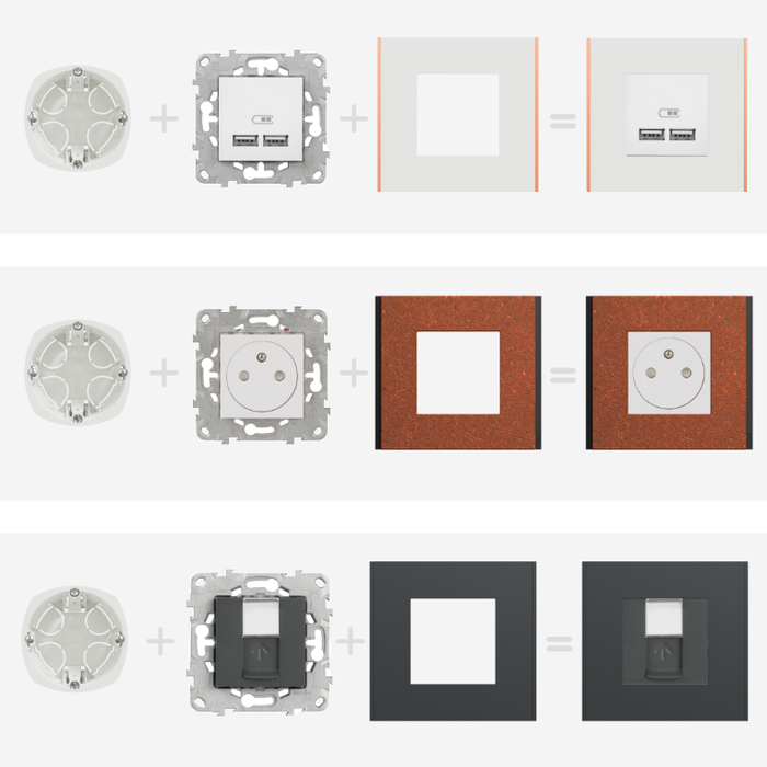 Permet de commander un éclairage depuis un ou deux points de contrôle (si associé à un produit similaire). Produit livré avec son support de fixation en zamak, à monter en boîte d'encastrement. Fixation par vis ou par griffes. Un large choix de plaques de finition est proposé en option pour s'accorder avec la décoration intérieure. Raccordement par bornes sans vis, 10 AX, 250 V CA, 50/60 Hz, pour câbles souples ou rigides jusqu'à 2,5 mm². Face avant conçue en thermoplastique ABS, sans halogène elle est résistant aux UV, à l'acétone, l'alcool, l'ammoniaque, à l'huile, au pétrole, ...