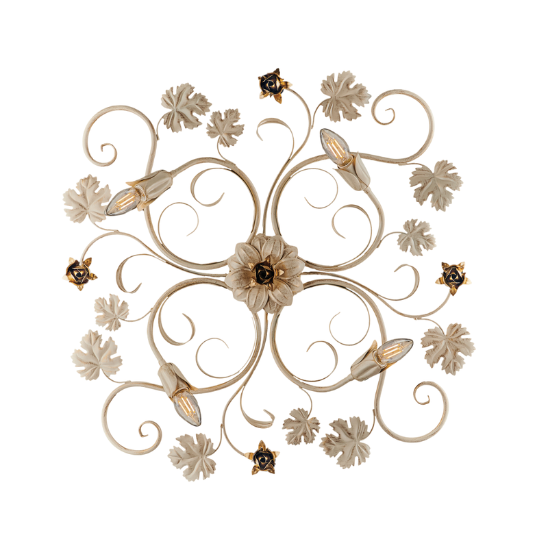 Iris Plafonnier en fer laqué ivoire décor or antique 4 lumières H.17 d.76 BL169-PL4-AV