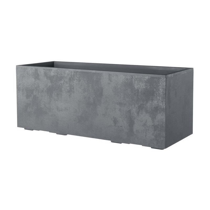 Jardiniere Muret Millennium R Ashgrey a réserve d'eau et roulettes 99 x h39 cm en Matiere Recyclat. Injectée recyclée & recyclable, résistante au gel, résistante aux UV, pot avec bouchon amovible Volume 97 L. Coloris Gris