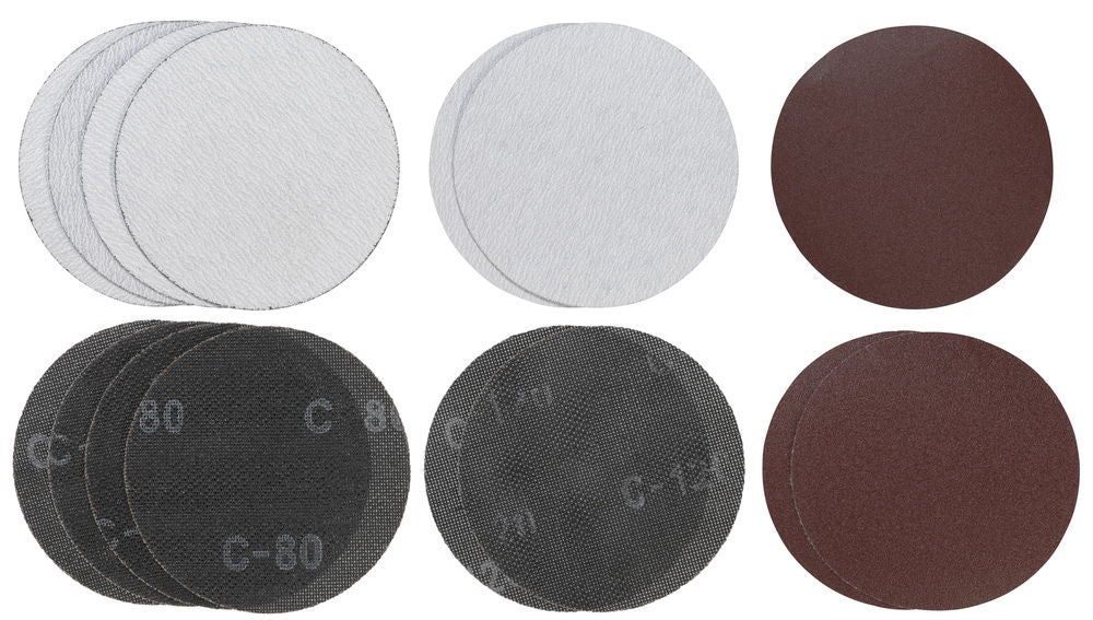 Le kit d’accessoires comprend 15 feuilles et grilles abrasives de de diamètre 180 mm et différents grains. Avec 10 grilles abrasives de grain P80 et 5 grilles abrasives de grain P120 Permettent de poncer le mastic/les cloisons sèches/les revêtements de sol/le bois/les plastiques/les ouvrages de maçonnerie, et d’enlever peinture/rouille/papier peint/enduits friables S’adaptent notamment sur la ponceuse murale TE-DW 180 Einhell