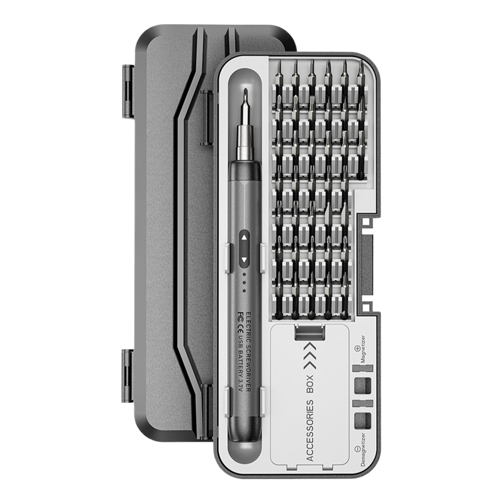 Jeu de tournevis électriques durables 46 en 1, ensemble d'outils portables, rechargeables, sans fil, couple élevé, réparation électronique, gris