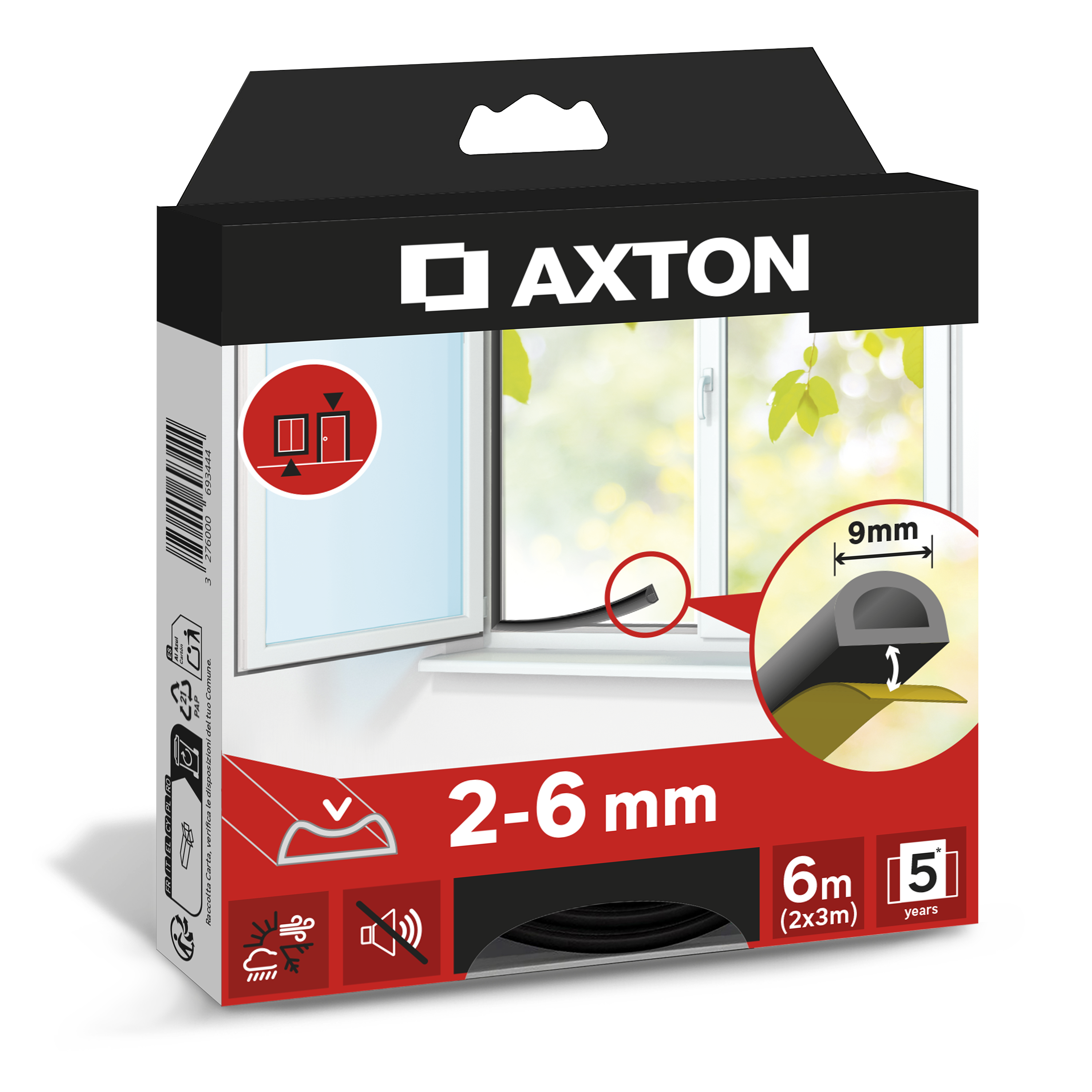Joint de porte et fenêtre AXTON 2 à 6 mm, L.6 m noir