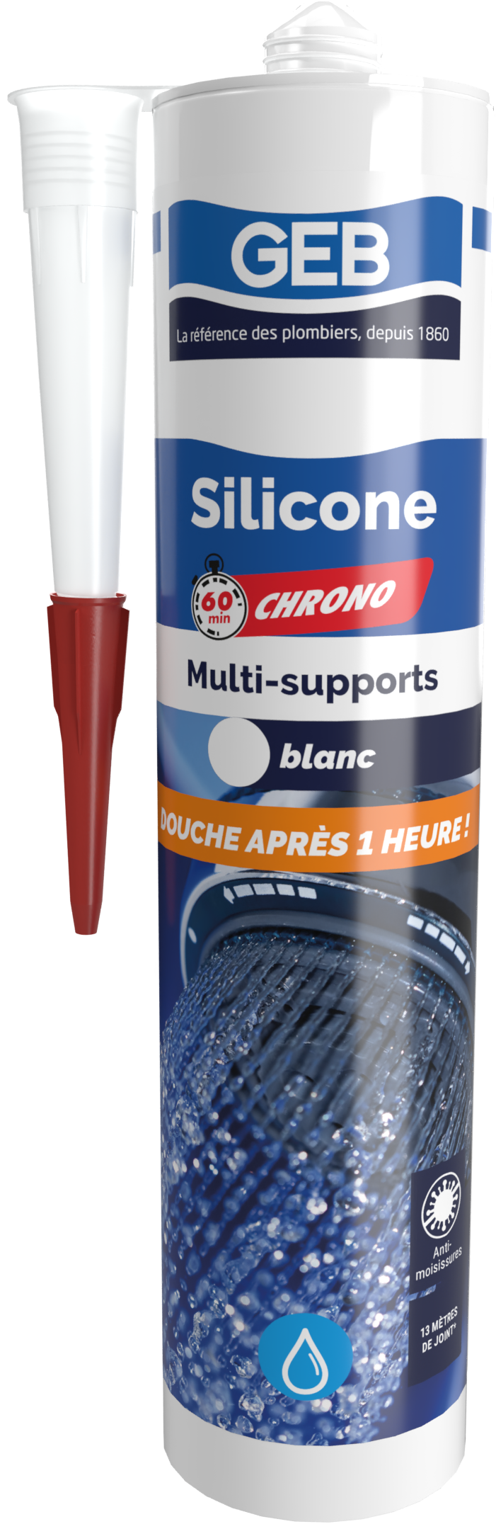 Silicone sanitaire séchage rapide. Remise en eau après 60 minutes. Mastic silicone acétique blanc - Qualité spéciale sanitaire, multi-supports.