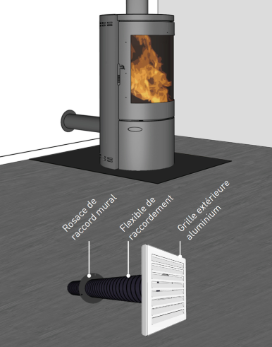 Canalise l'air frais de façon étanche jusqu'au poêle - pas d'entrée d'air froid dans la pièce - grille extérieure avec rebords larges pour carotage facilité
