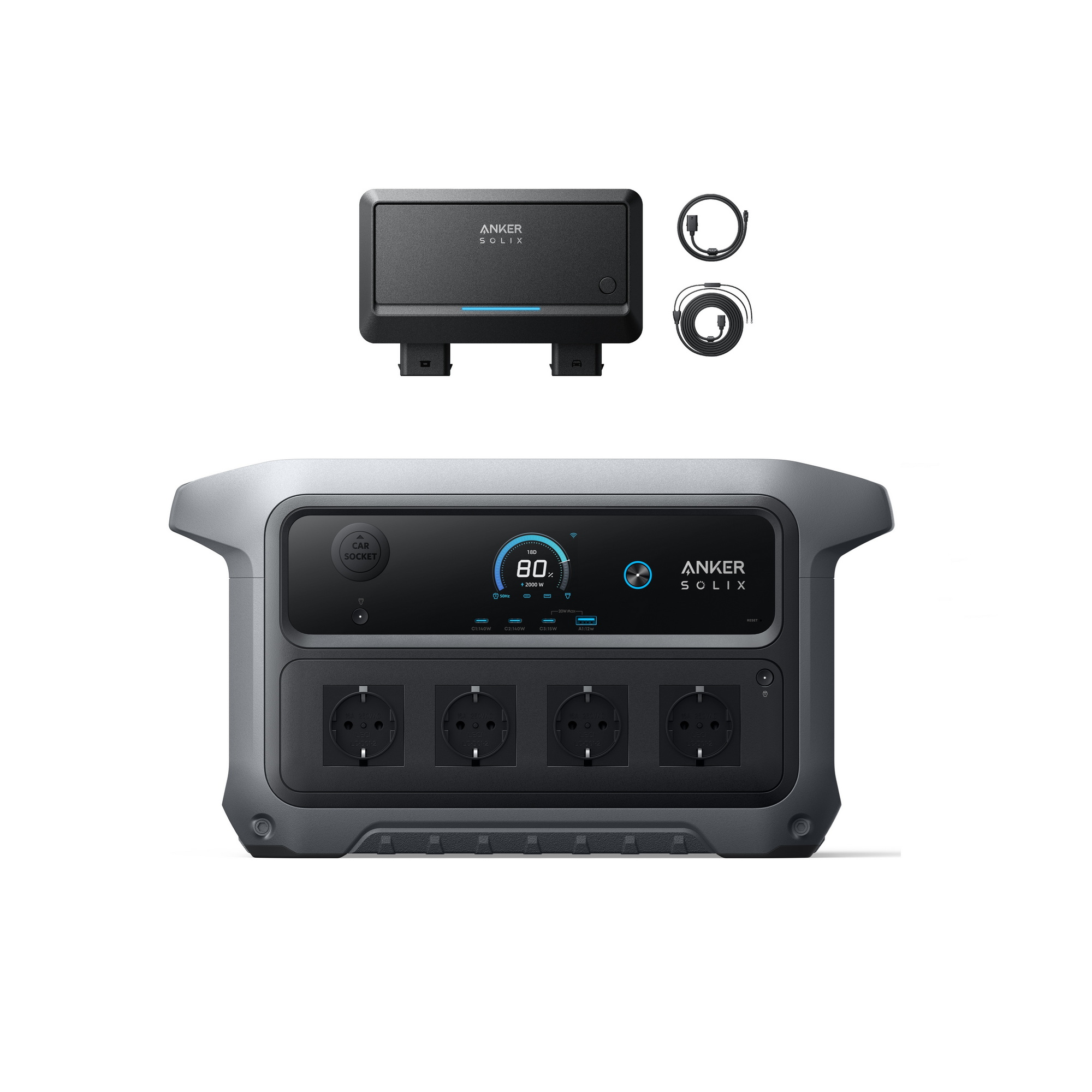 Kit Anker SOLIX C2000 Gen 2 avec Alternator Charger , Chargeur DC double 800W , Batterie 2048Wh, Générateur solaire 4x2400W