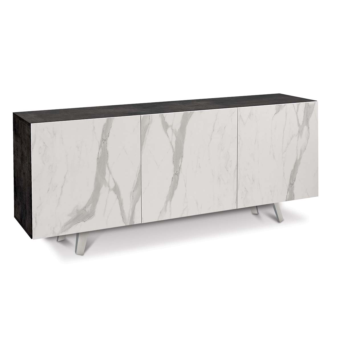 Cadre de 18 mm d'épaisseur et façades de 16 mm d'épaisseur, portes légères, bords en ABS. Pousser-tirer. Contient 2 étagères réglables. Pieds peints en chrome satiné. Armoire en kit.