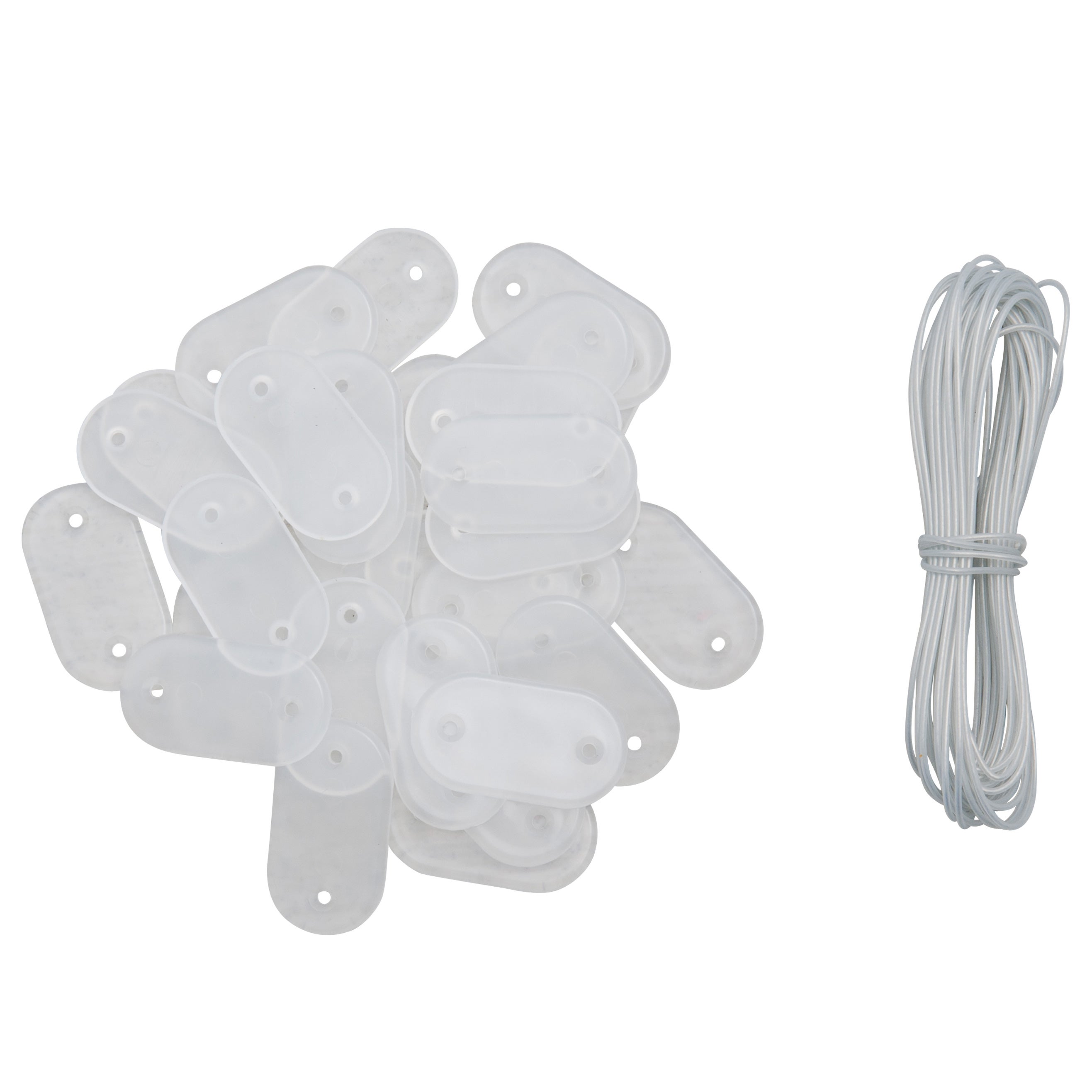 Le lot comprend 30 fixations transparentes et 4 metres de fil galvanise pour couvrir plusieurs points d attache.