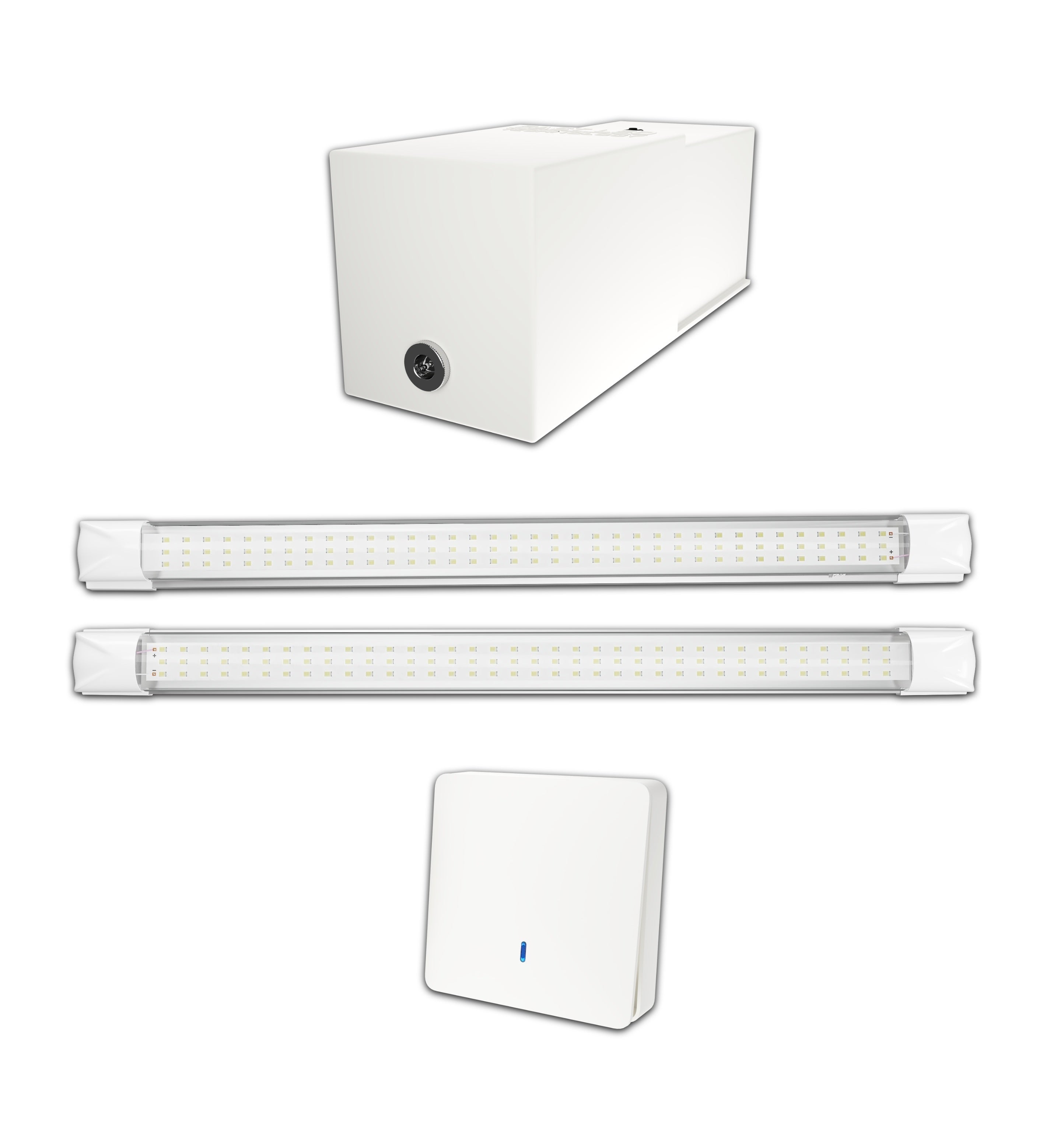 Kit éclairage sans fil garage box cave sous sol - 2 réglettes led - 1 Batterie - 1 interrupteur radio - Gamme CONFORT - 2200 lumens