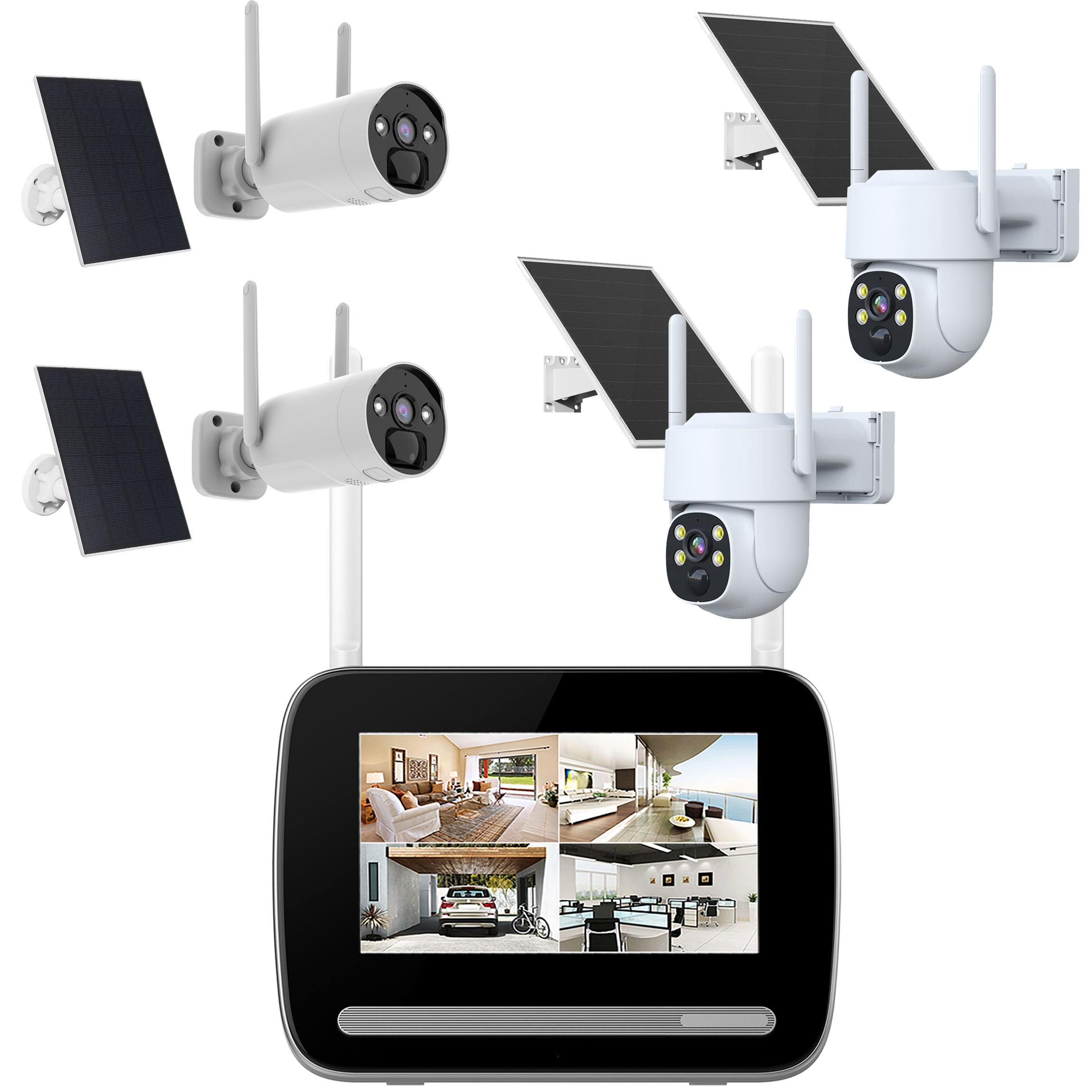 KIT écran 7″ enregistreur 4MP ULTRA HD + 4 Caméras rechargeables (2x PT) + 4 Panneaux solaire