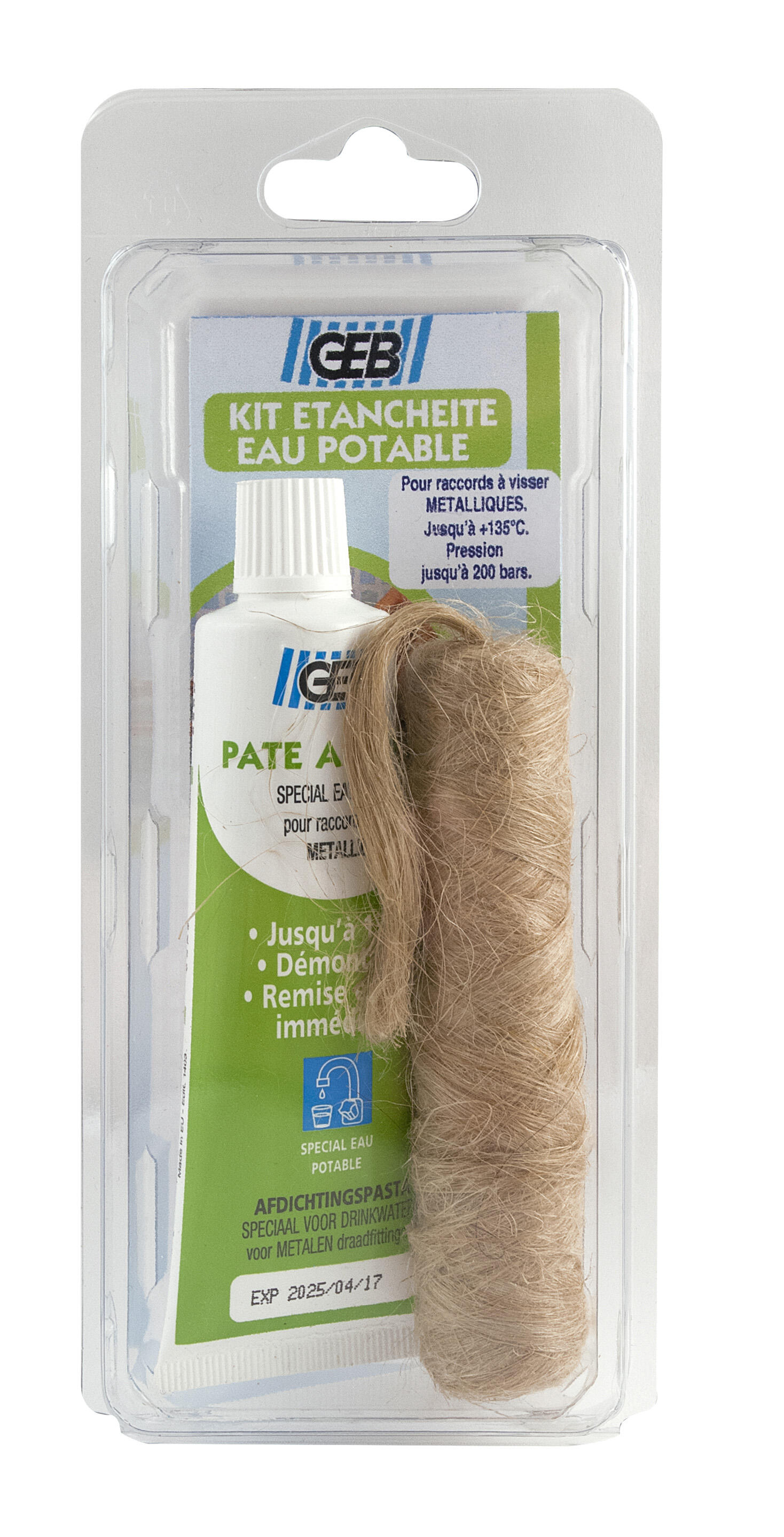 Pate à joint eau potable + filasse pour l'étanchéité des raccords métalliques . Agrément eau potable.