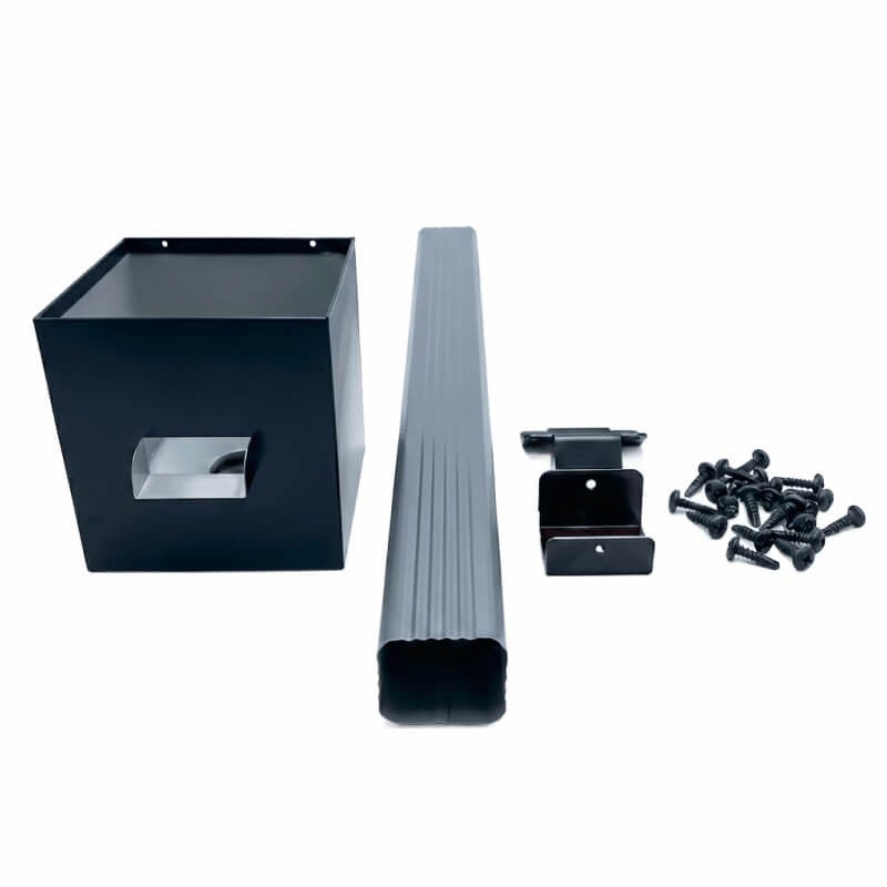 Kit évacuation eaux pluviales aluminium 60×80 mm – boîte à eau + descente 3 m – fixation incluse – maison plain-pied – anthracite