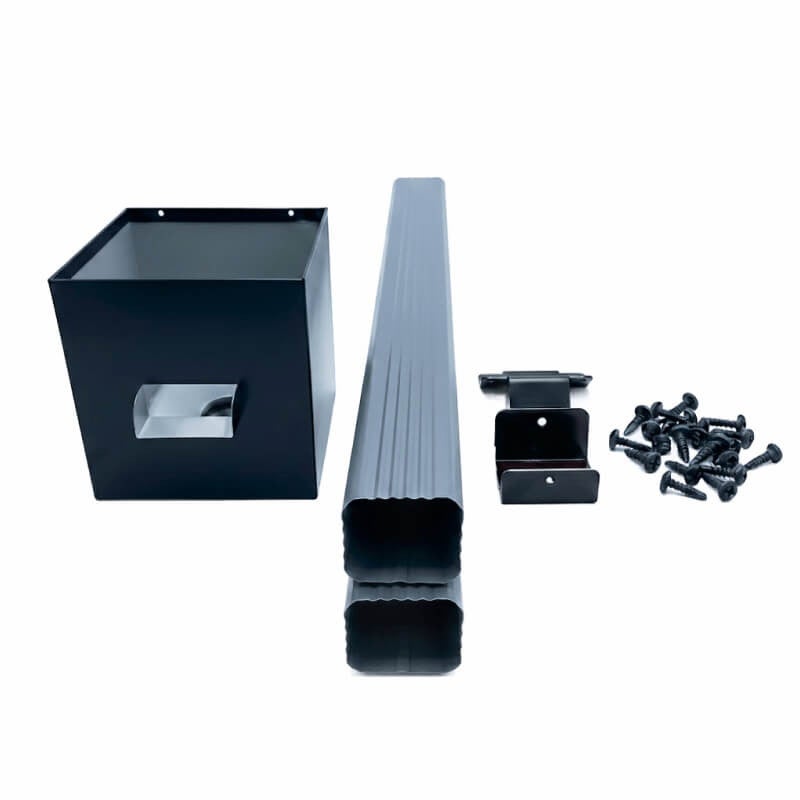 Kit évacuation eaux pluviales aluminium 60×80 mm – boîte à eau + deux descentes 3 m – fixation incluse – maison avec étage – anthracite
