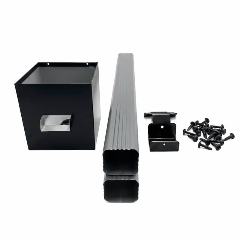 Kit évacuation eaux pluviales aluminium 60×80 mm – boîte à eau + deux descentes 3 m – fixation incluse – maison avec étage – noir foncé