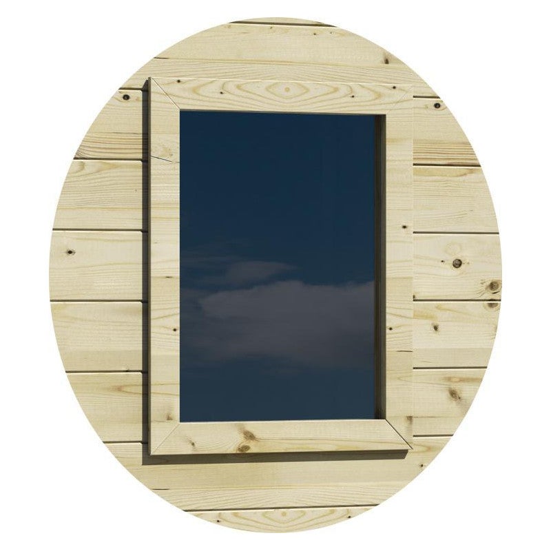 Kit fenêtre Stefy pour maison, cadre en sapin naturel massif avec plexiglas, 45 x 3 x 55 cm – pièce détachée ou accessoire pour maisons en bois