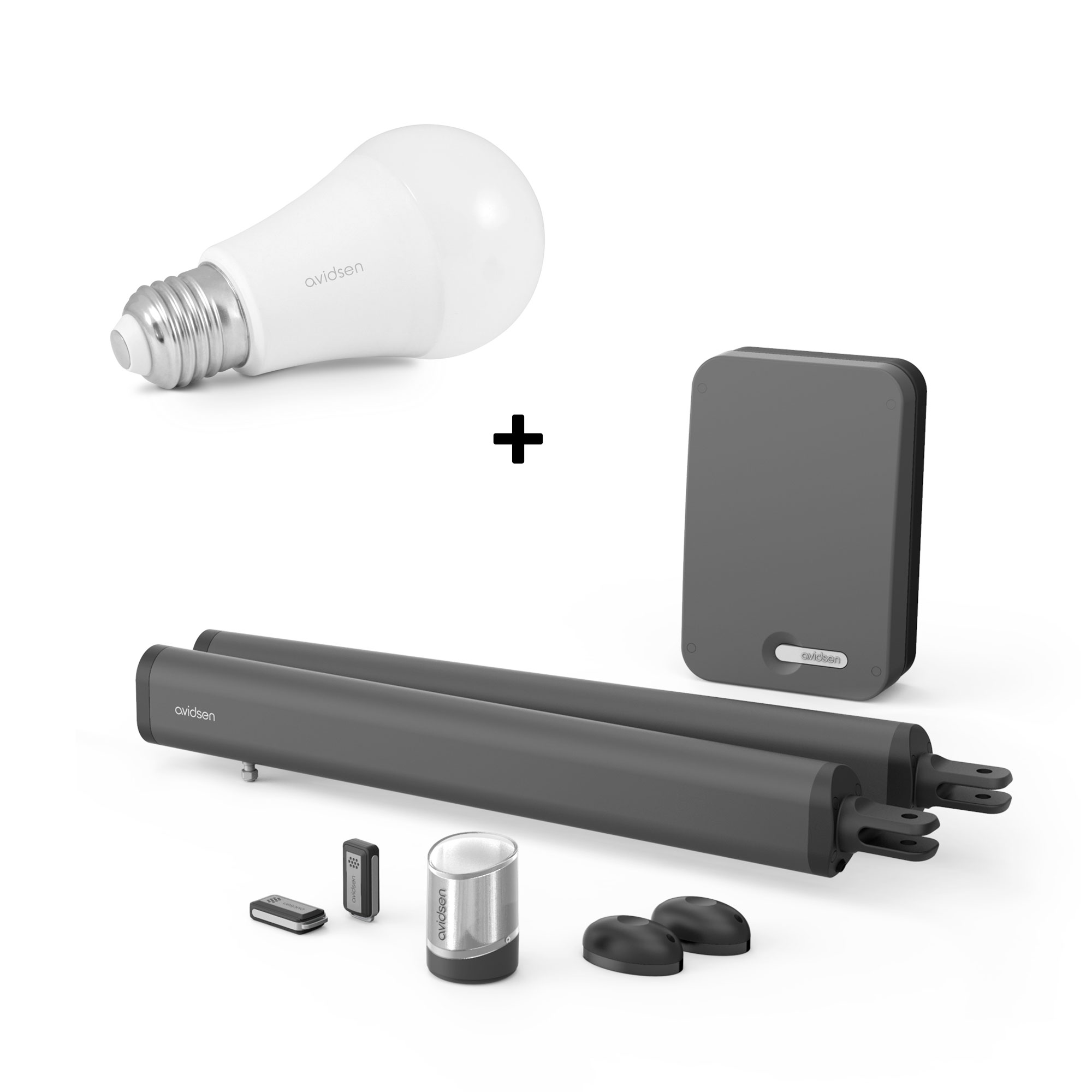 Kit motorisation connectée à vérins pour portail à battants Teha Connect et son ampoule connectée