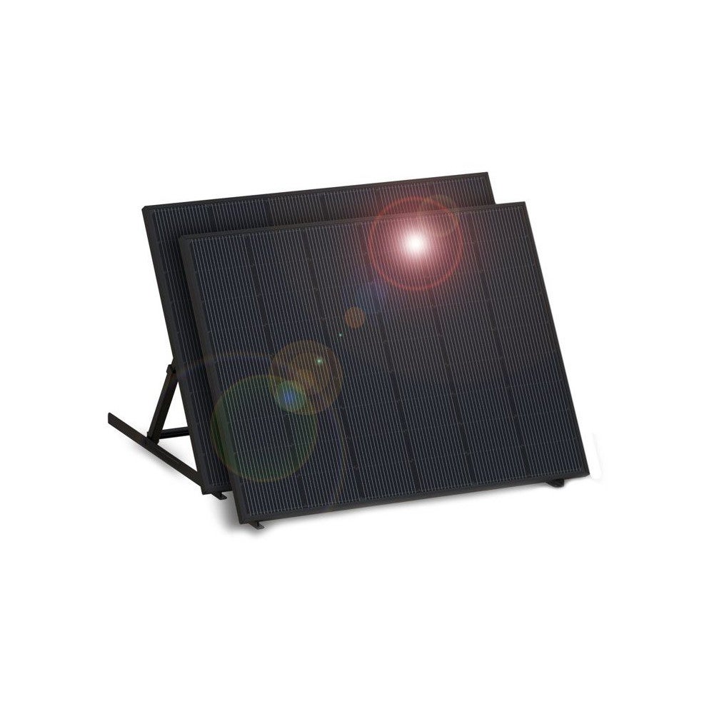 Kit prémonté comprenant 2 panneaux monocristallins 210W (420W total) sur cadre métallique pour installation en surimposition.