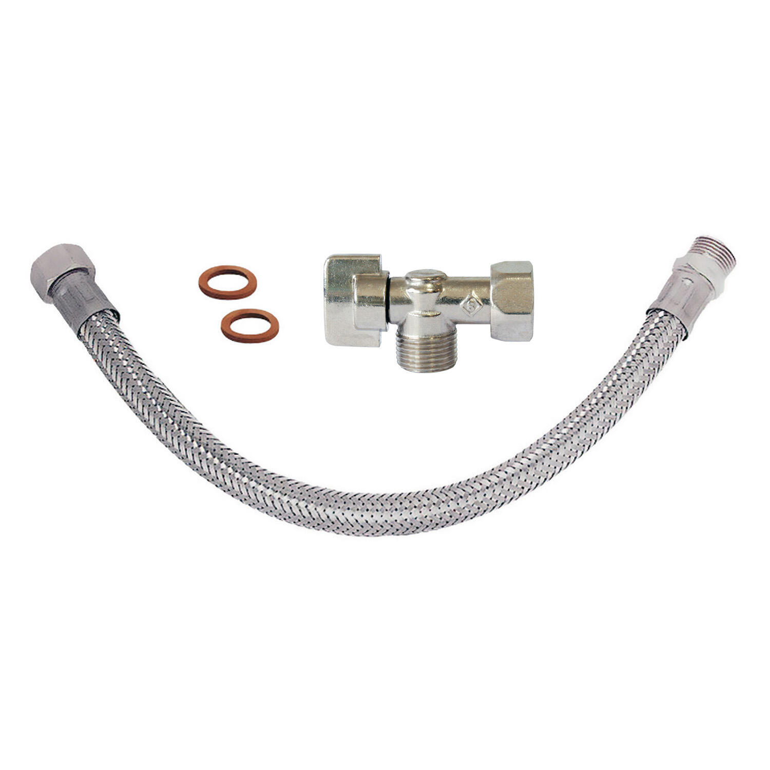 Kit robinet d'arrêt WC + flexible + joint laiton nickelé