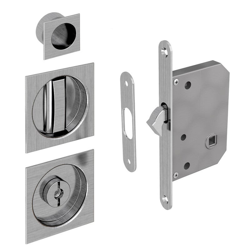 Kit serrure à condamnation, poignée carrée, acier finition satiné