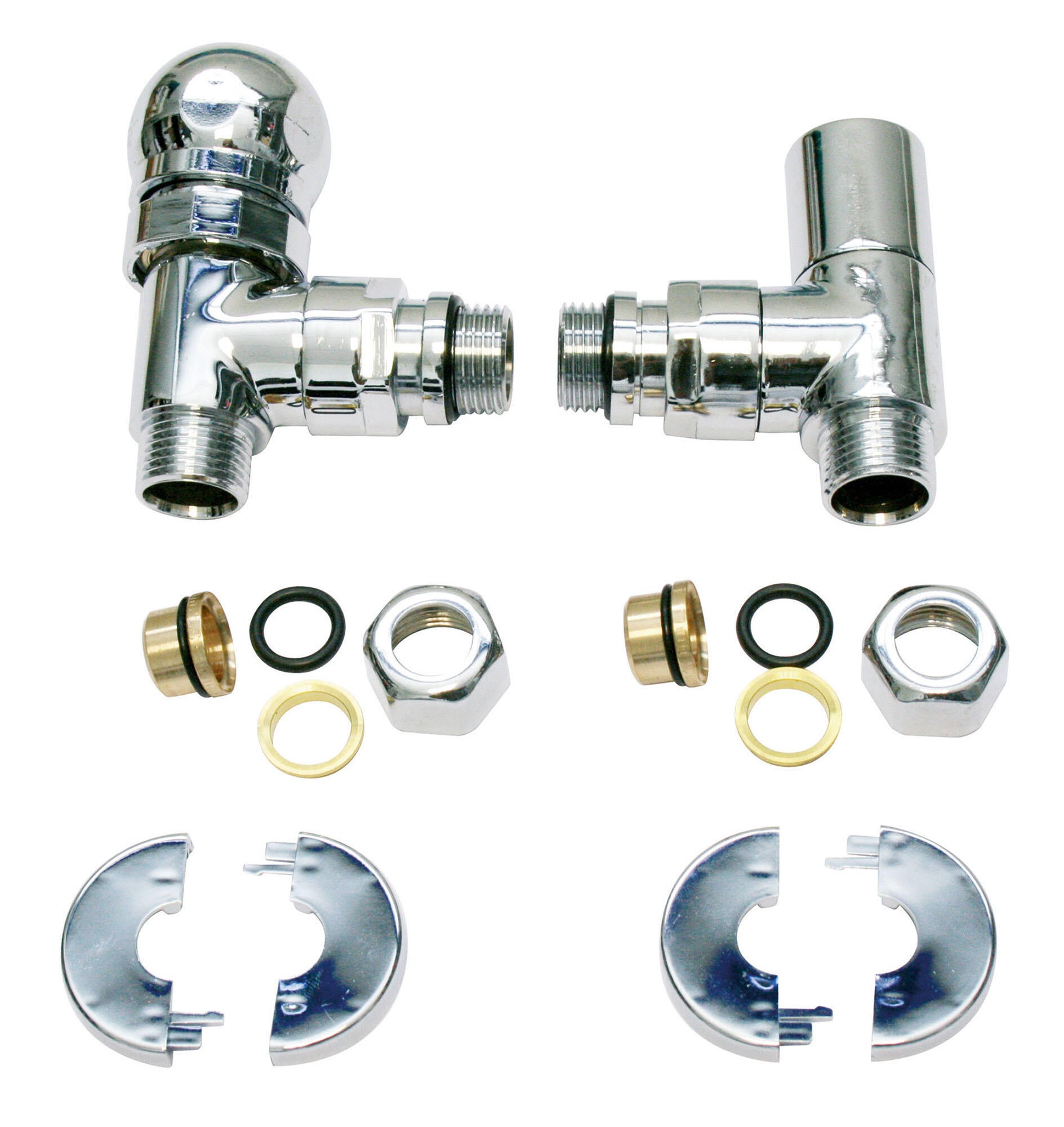 Kit thermostatisable chromé pour sèche serviette équerre 15/21 avc volant manuel et raccord pour tube cuivre diamètre 14