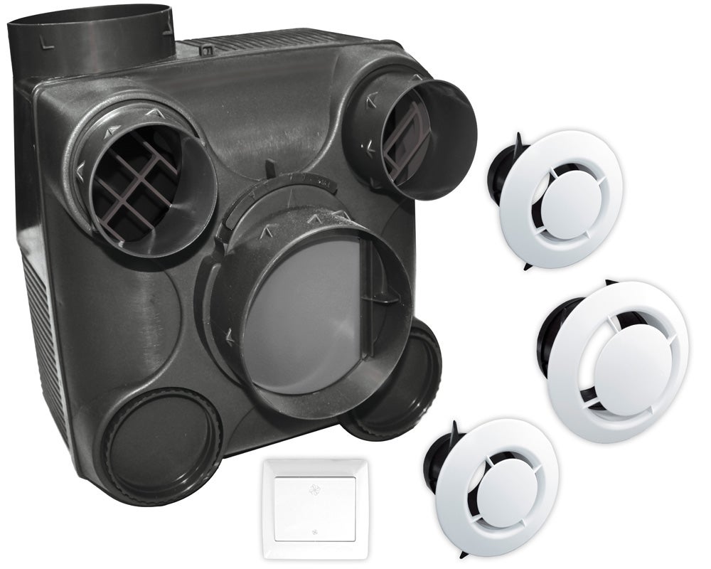 VMC autoréglable pour habitat individuel du T1 au T5 (2 sanitaires + 1 cuisine),