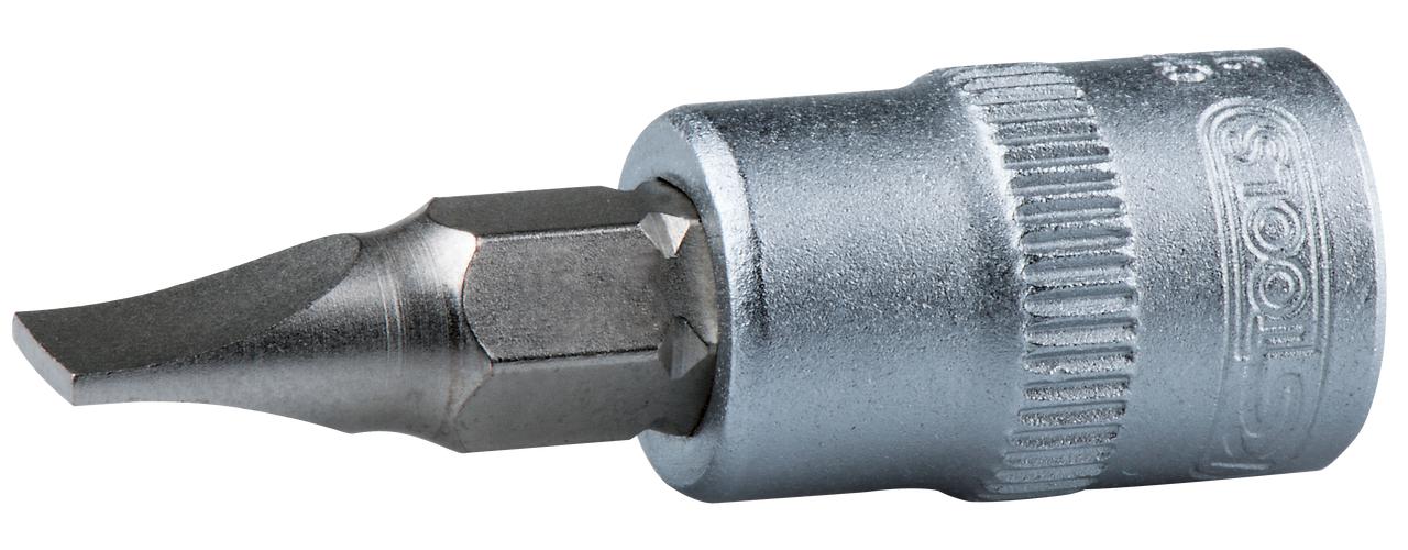 Fente Carré d'entraînement intérieur selon DIN 3120 / ISO 1174 avec encoche pour verrouillage par bille avec embout tournevis nickelé serti Pour une utilisation manuelle Finition satinée Chrome Vanadium