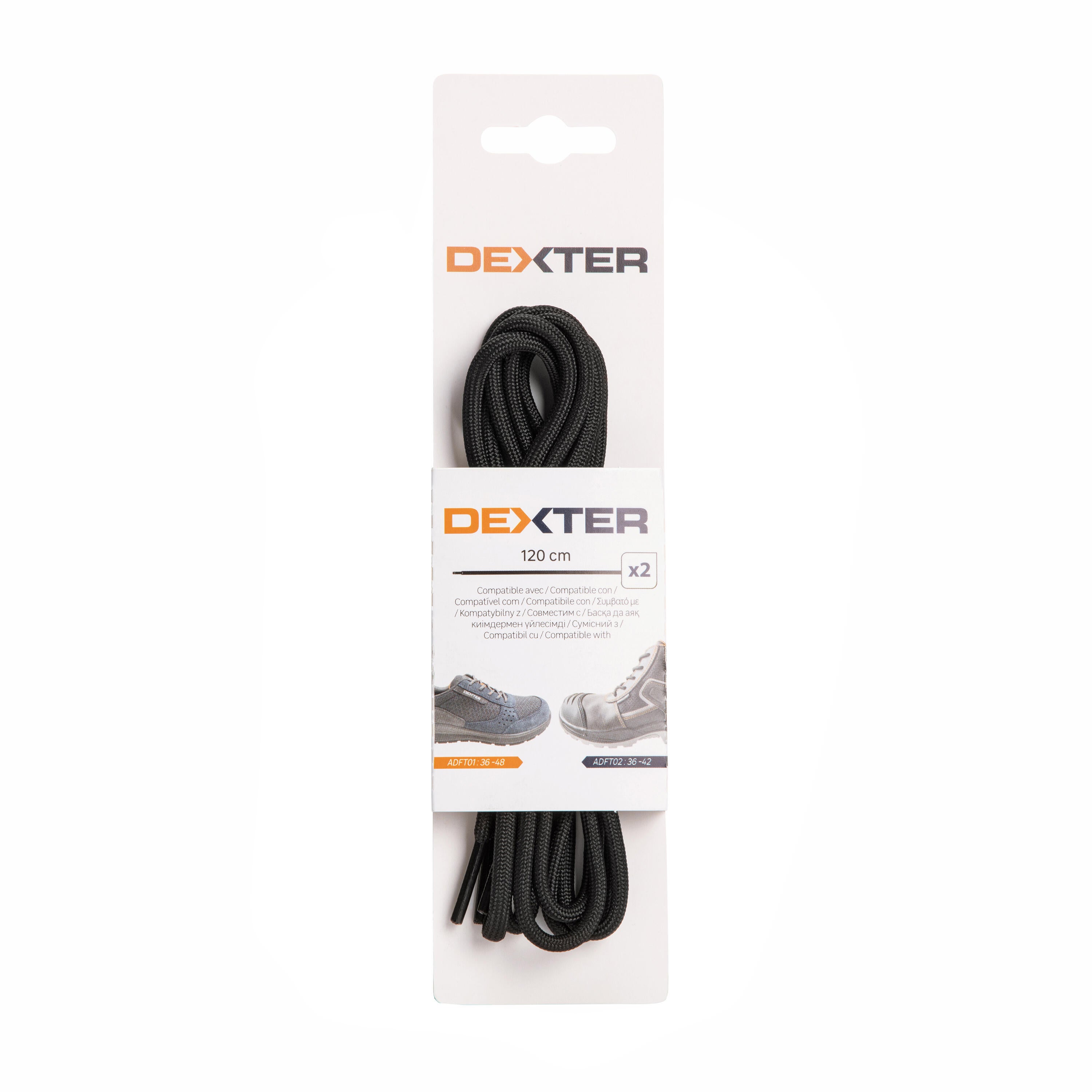Lacets Dexter noirs, en polyester, idéaux pour donner un look unique à vos chaussures de travail Dexter de la taille 36 à 48 et à vos bottes Dexter de la taille 36 à 42. Grâce à sa longueur de 120 cm, cette paire de lacets peut s'adapter à la plupart de vos paires de chaussures de travail de ces tailles. Il est recommandé de laver en machine à une température maximale de 40ºC. Mesures : 120 cm de longueur.