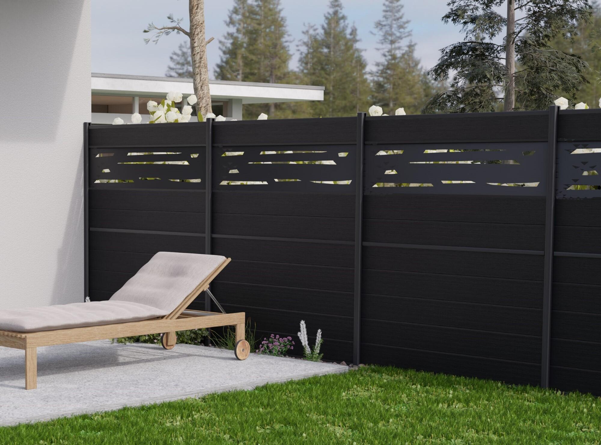 Lame de claustra COEX Composite PREMIUM® noire H 18 x L 150 x Ep.2,1 cm Lames en bois Composite PREMIUM® enrobé d'une enveloppe protectrice de polymère. Les couleurs ne passent pas dans le temps et l'entretien est très limité! Finition brossée/toucher lisse, deux faces identiques. Usage sur muret possible. hauteur de 180mm, 10 lames sont seulement nécessaires pour un claustra complet de 1,8m de haut. A installer avec les profils de finition aluminium haut/bas et le profil intermédiaire aluminium Composite PREMIUM® . Existe en gris anthracite, noir, gris clair, taupe, sable et bleu Glaz pour associer lames, profils, décors et poteaux Composite PREMIUM® selon vos envies!