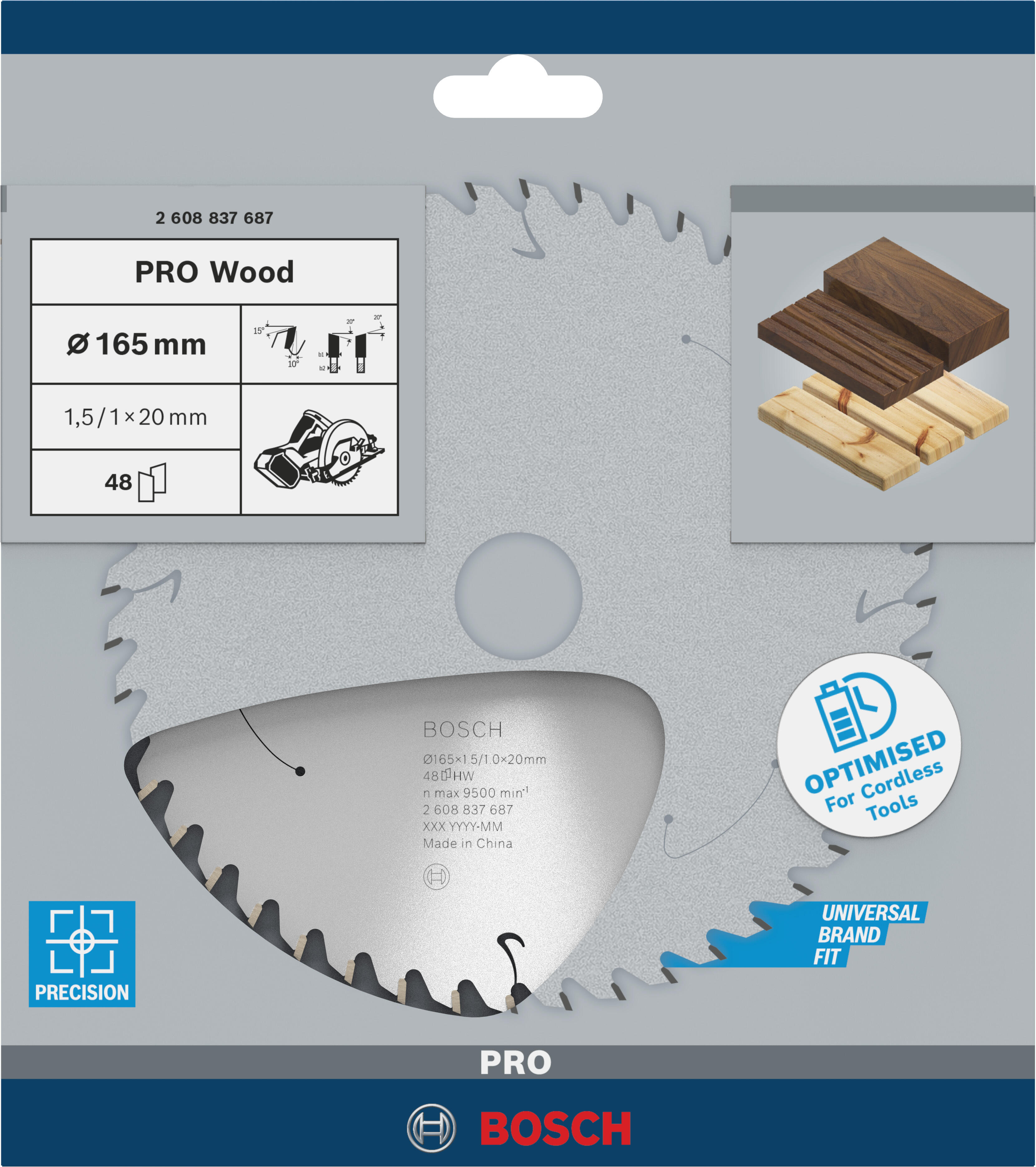 Lame de scie circulaire pour bois BOSCH PRO 165 x 20 x 1,5 mm 48 dents