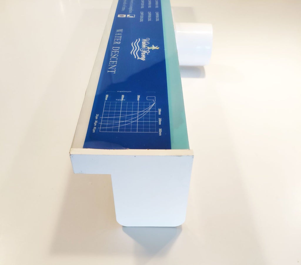 Avantage de l'acrylique par rapport aux lame d'eau en Inox : Ne rouille pas. Compatible avec les piscines au sel, chlore, brome, UV. Connexion gros débit à l'arrière de la lame d'eau en 2X Ø50mm L'eau doit passer par le filtre avant la lame d'eau pour ne pas la boucher.