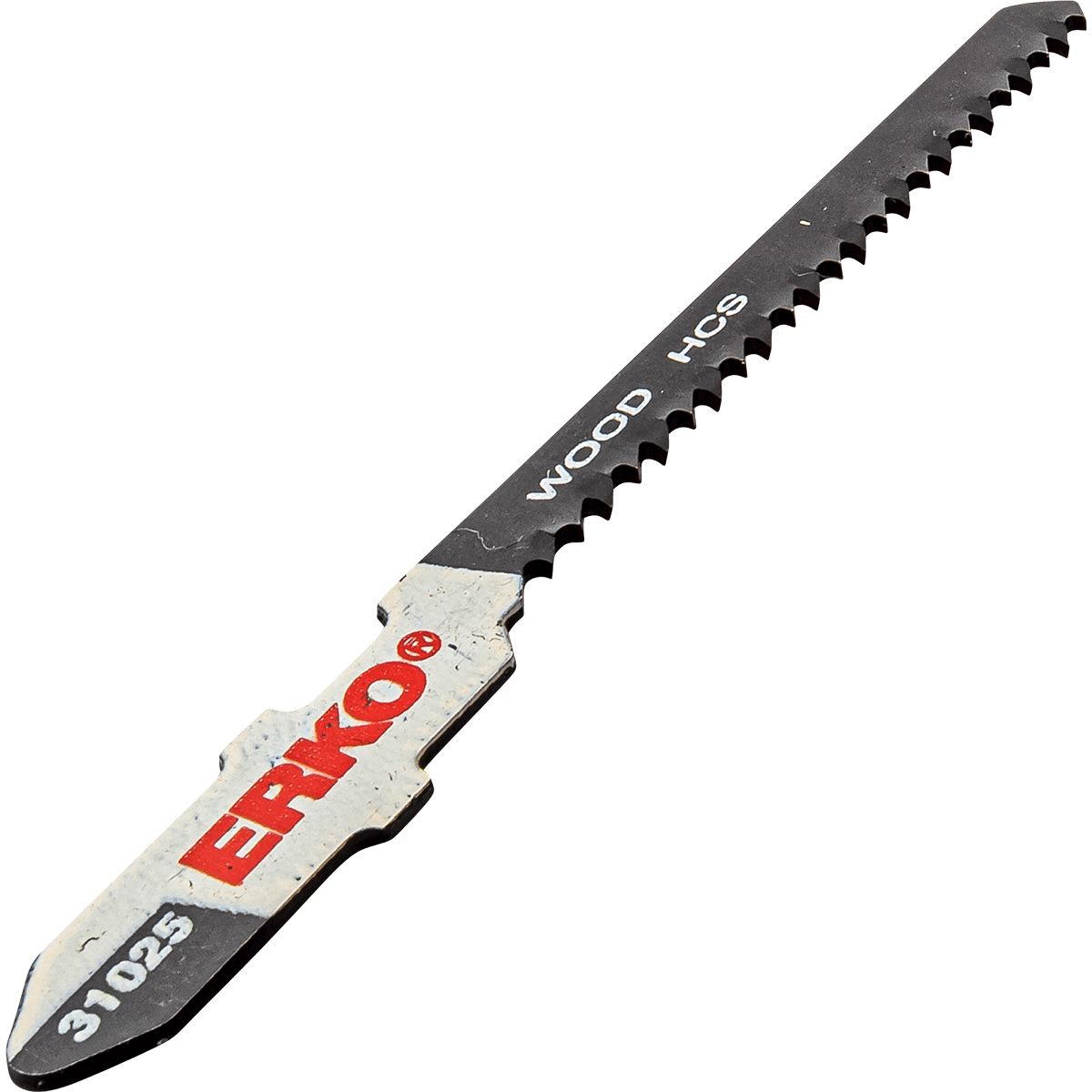 Lame sauteuse fraisée en HCS (Acier Haut Carbone). 50 mm utile, 75 mm totale, 12TPI (pas de 2 mm), série WOOD CLASSIC, pour le parquet bois et pvc, le chantournage. Coupe très fine.