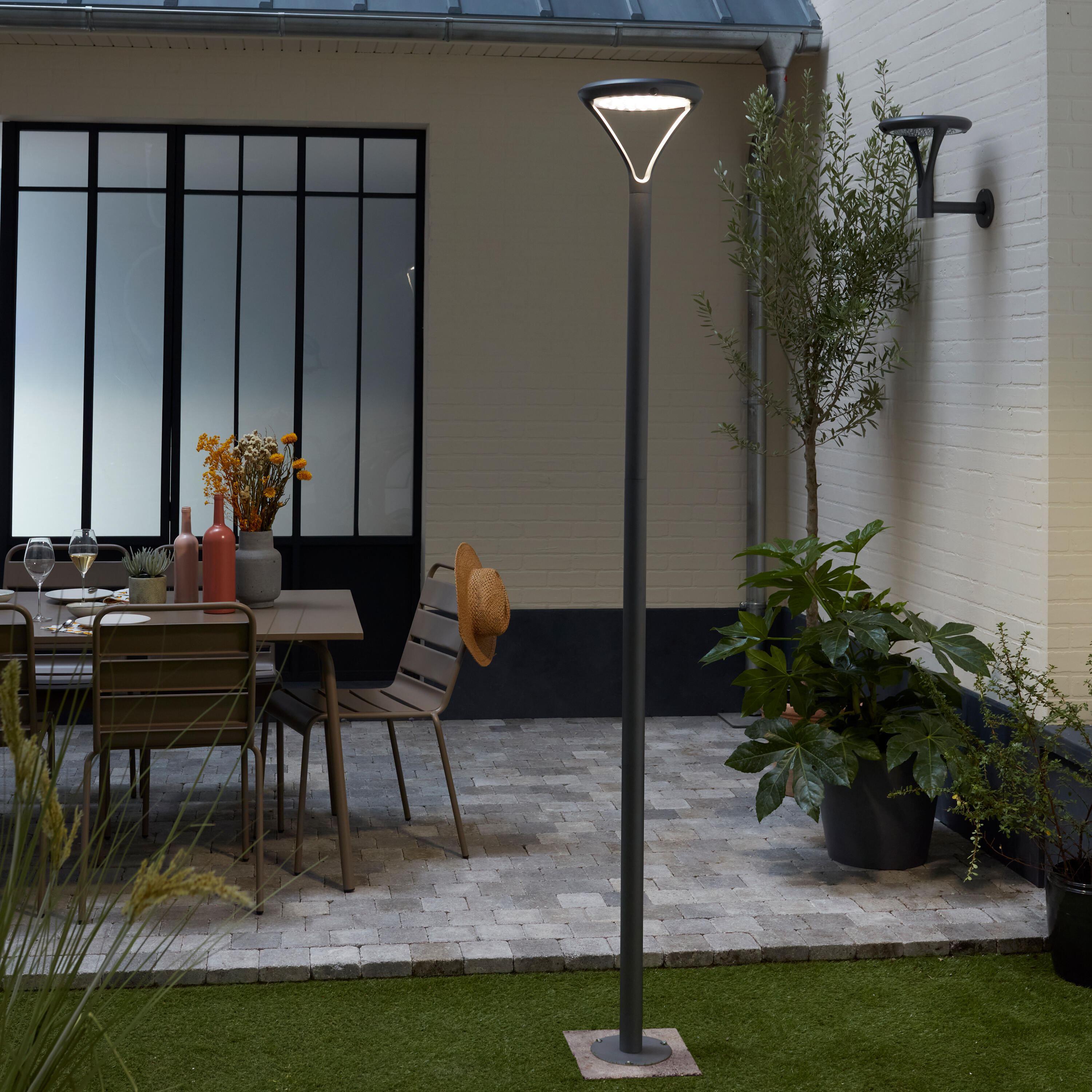 Lampadaire solaire à détecteur 2000 Lm, blanc neutre, Bermeo anthracite INSPIRE