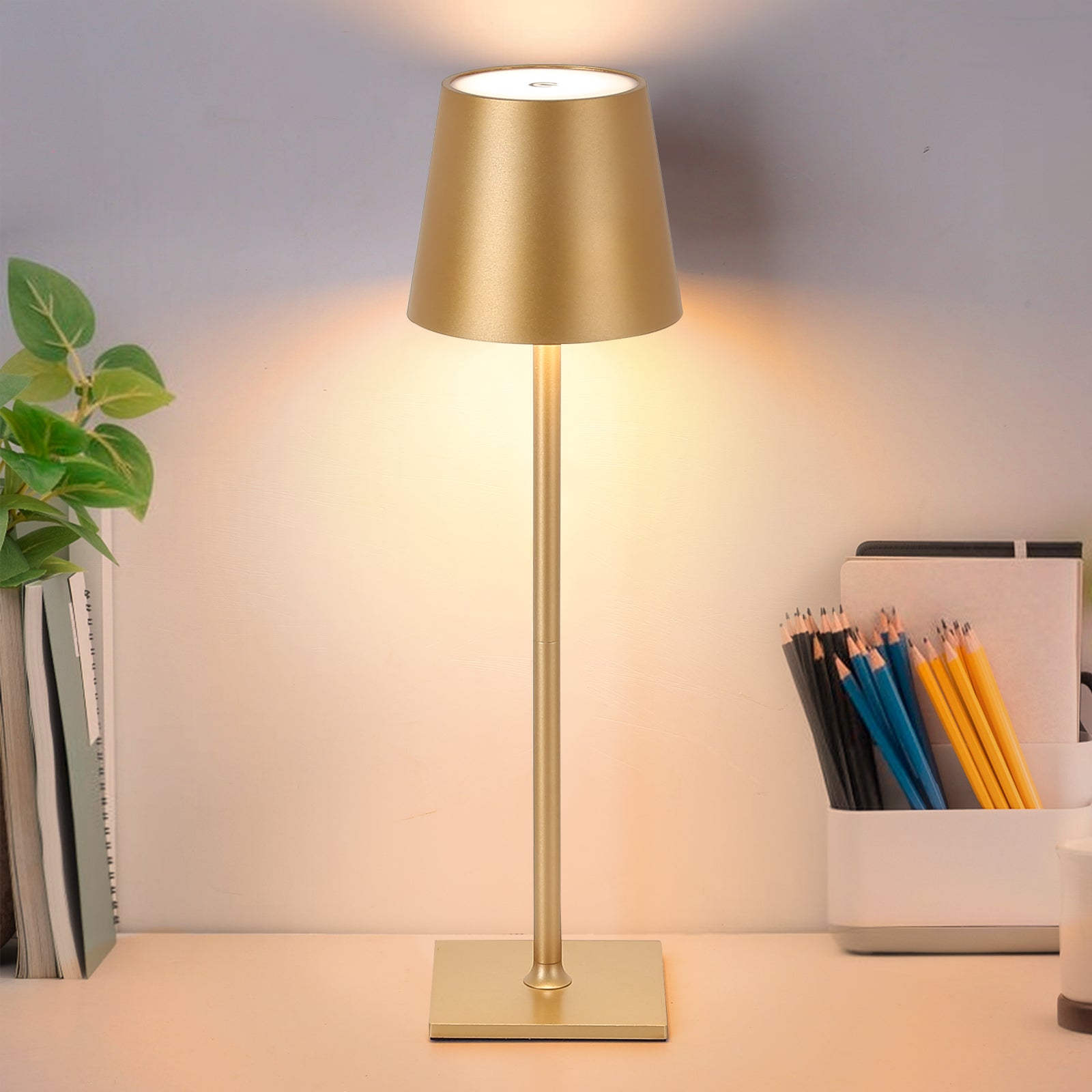 Lampe de Table Rechargeable Portable LED CCT 3000K-4000K-6000K en Aluminium Doré, IP44, 1.5W, Tactile avec Intensité Réglable