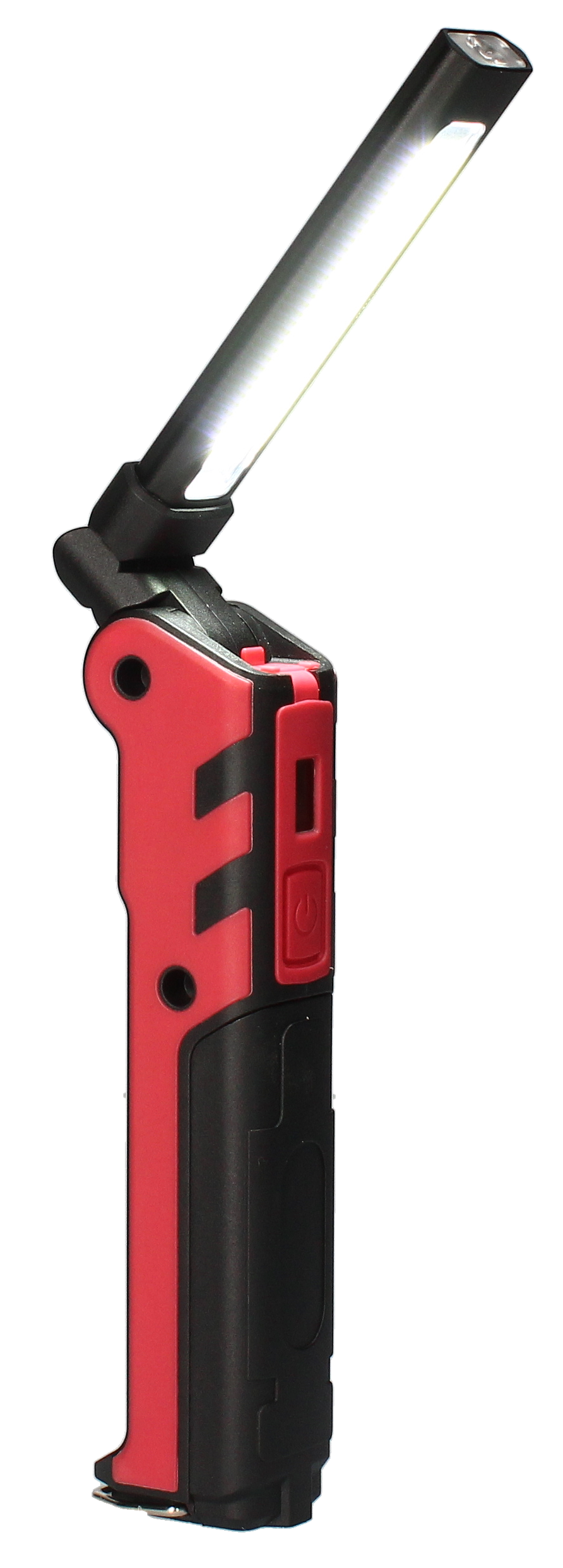 Lampe torche possédant 2 éclairages 5W 350lm et 3W 150lm , Grâce à sa batterie haute capacité Lithium-ion de 2000mAh elle permettra un eclairage continue d'environ 3 heures. Très compact cette lampe torche se plie et pourra se glisser dans votre poche. Une pression continue sur le bouton de marche vous permettra de faire varier l'intensité de la lumière . Son crochet basé sur le dessous de la lampe torche ainsi que sa fonction aimantée permettra de l'accrocher afin de travailler les mains libres. Température de couleur Blanc neutre 4000K pour une ambiance lumière du jour. Finition Noir & Orange