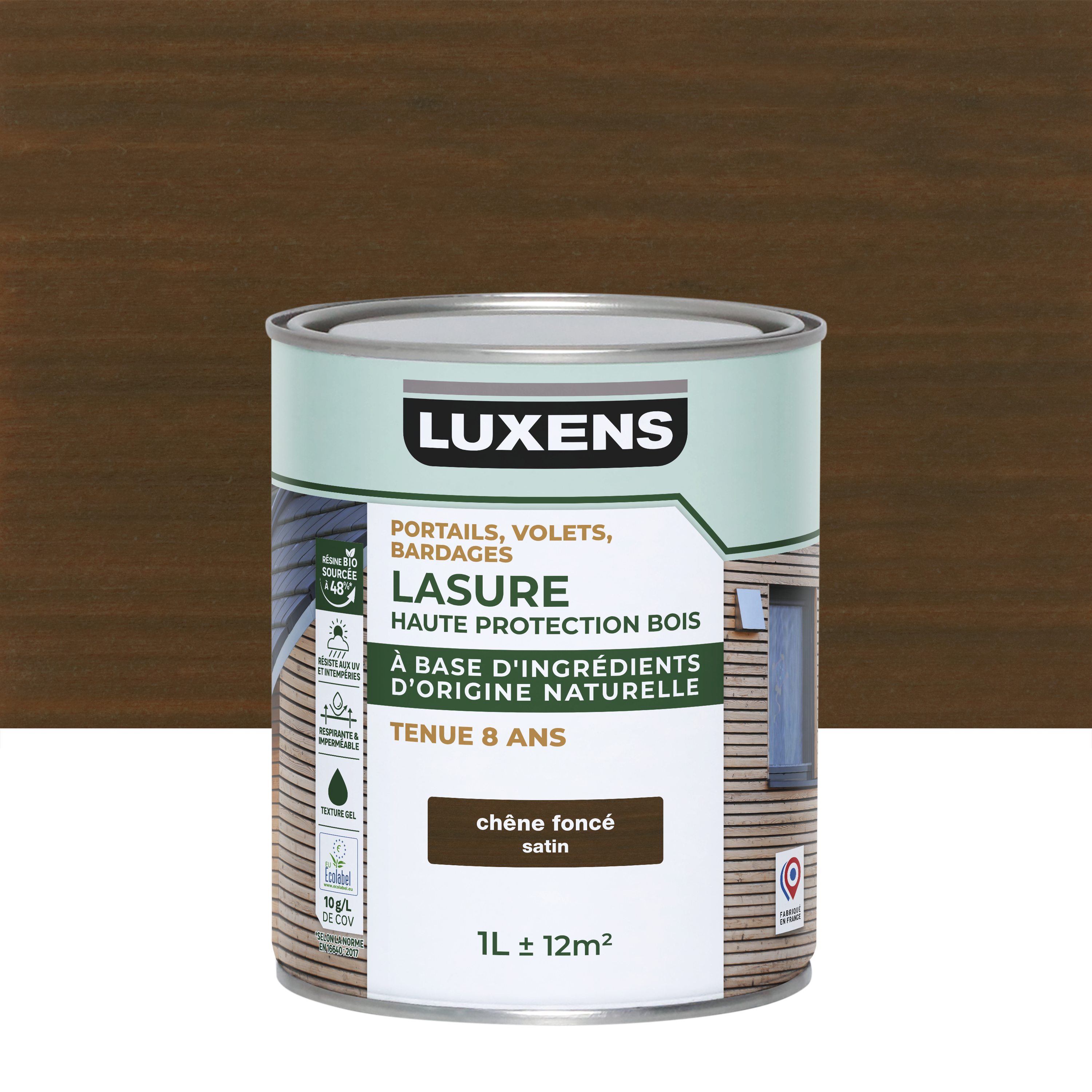 Lasure LUXENS Biosourcée 8 ans chêne foncé satiné 1 l