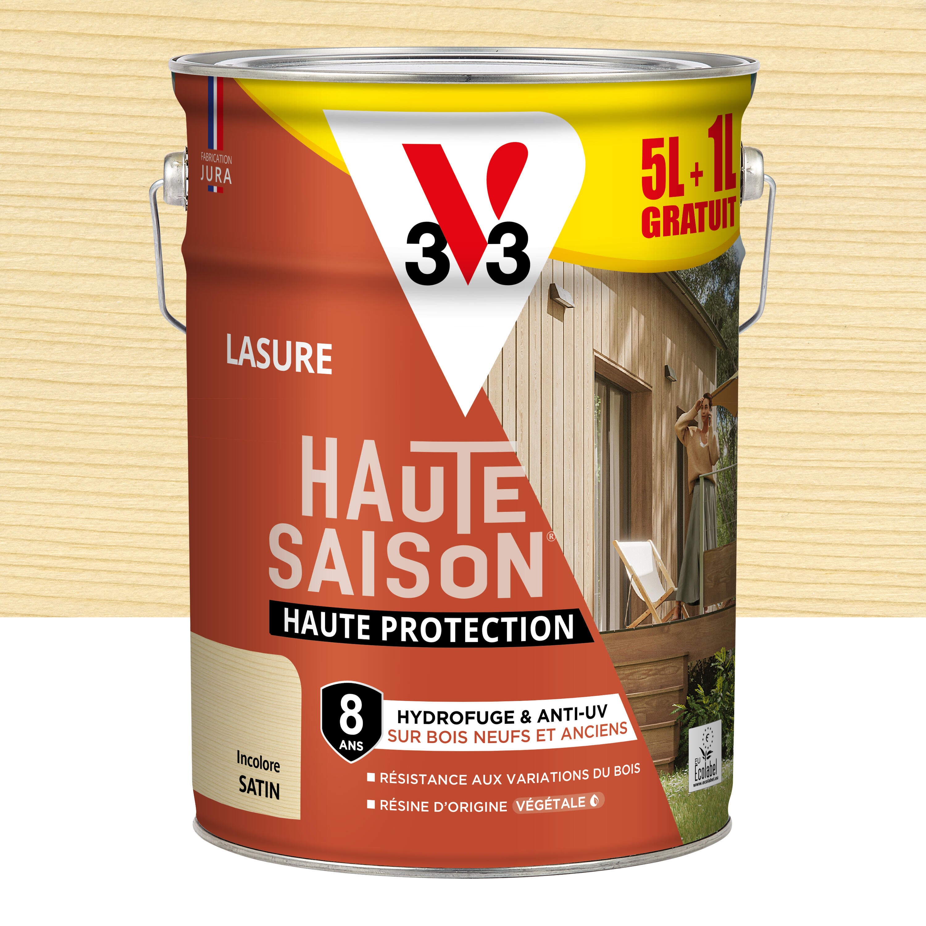 Lasure V33 Haute saison 8 ans incolore satiné 5L+20% gratuit