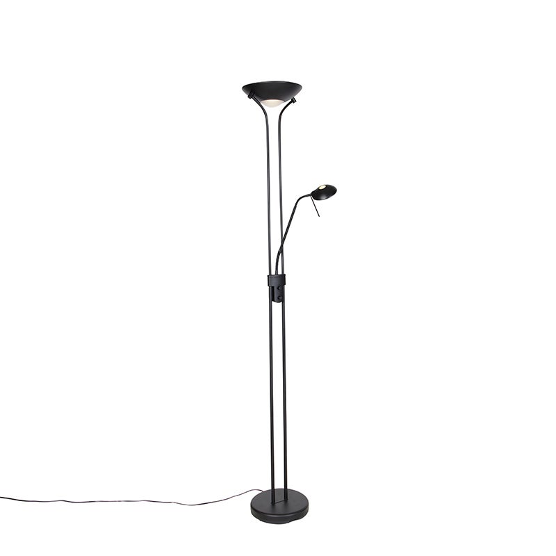 LED Dimmable Lampadaire avec lampe de lecture variateur inclus diva - 1 lumière - H 1800 mm - Noir - Moderne - Éclairage intérieur - Salon I Chambre