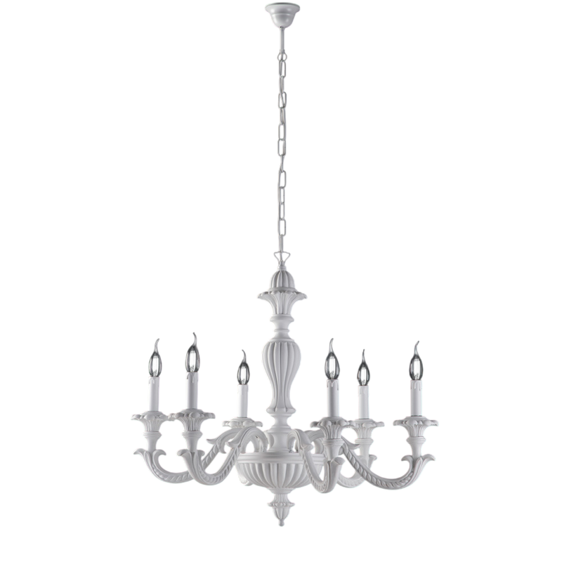 Leonardo Lustre Shabby en bois blanc 6 lumières 130 d.74 BL180-6-BCO