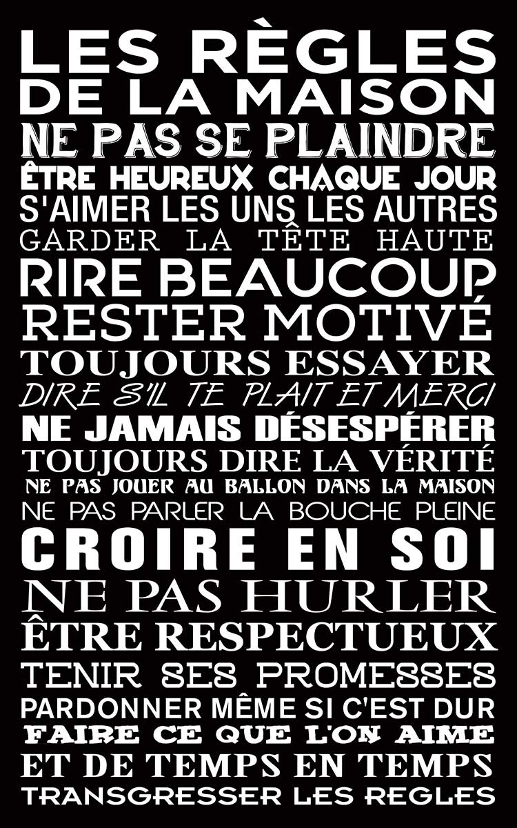 Les règles de la maison 1, Tableau Deco, Tableau cuisine, fabrication française , 50x80 cm