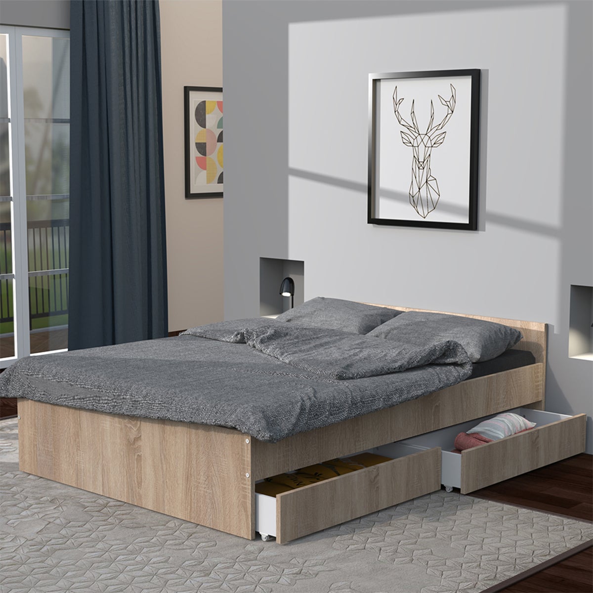 Lit 140x190 tiroirs inclus Orson Bois blanchi
