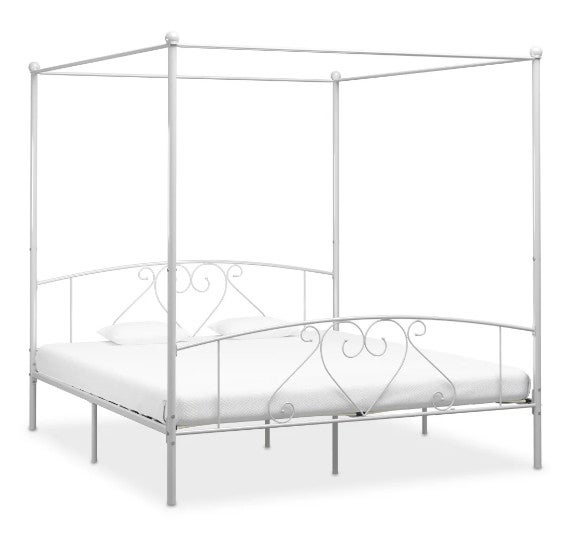Simple et classique, ce lit sera parfait pour votre chambre. Fabriqué en métal, il est solide et garantit un confort inouï. Son design à baldaquin peut accueillir des rideaux pour plus de décor. Il s'adaptera à tous les styles grâce à sa couleur blanche, tendre et intemporelle. Couchage 180 x 200 cm - L 209 x H 198 x P 187 cm Garantie : 2 ans