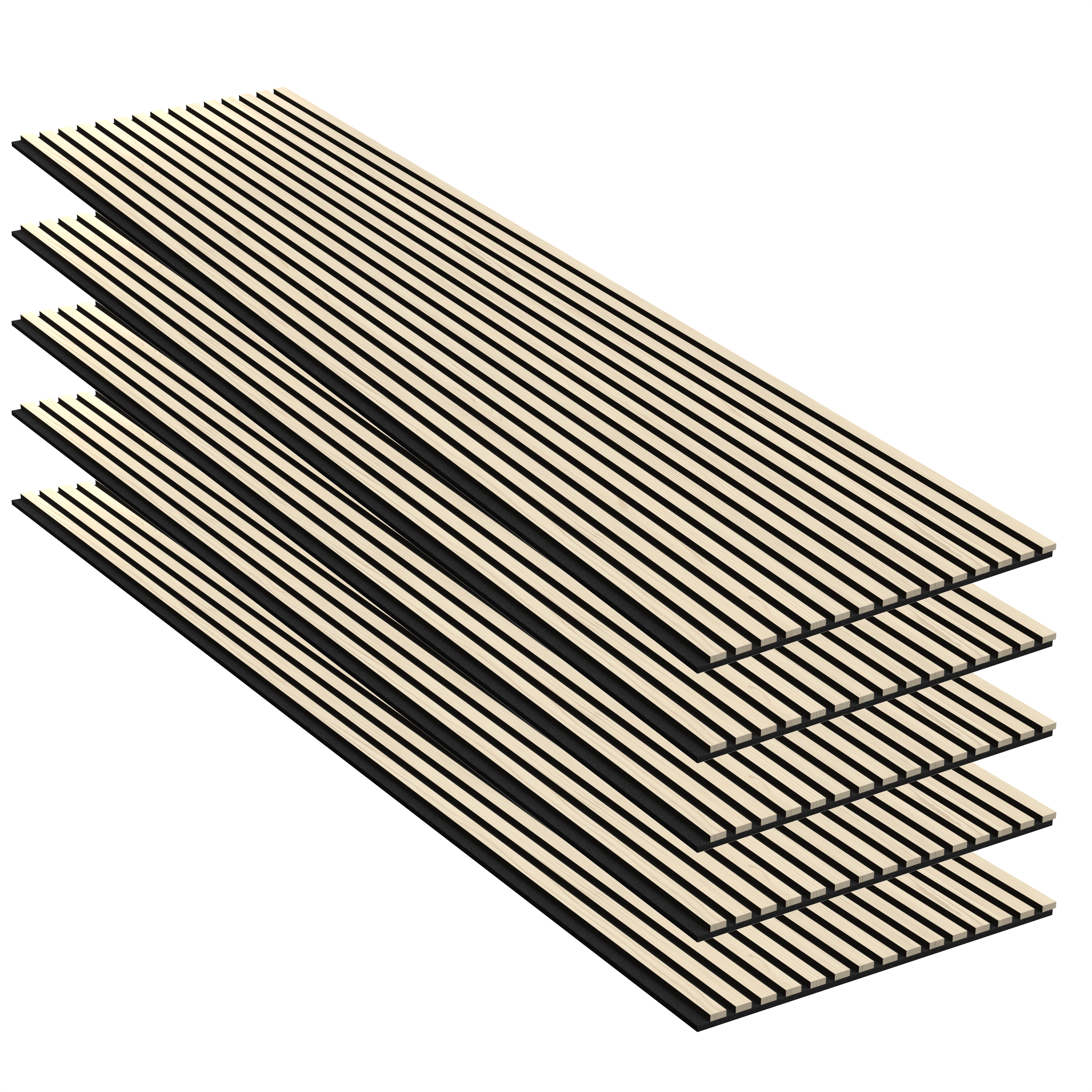 Lot 5 pièces Panneau Acoustique - Chêne Clair - Feutrine Noir - 240x60cm