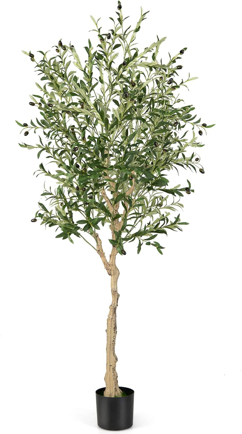 ------【Apparence vive et naturelle】L’olivier artificiel est orné de 1296 feuilles denses, de 72 olives hautement simulés et de troncs d’aspect naturel, qui imitent de manière réaliste, l’apparence de vrais oliviers pour illuminer votre pièce. Avec leurs couleurs naturelles et leurs textures réalistes, les plantes artificielles sont plus vives et plus denses.