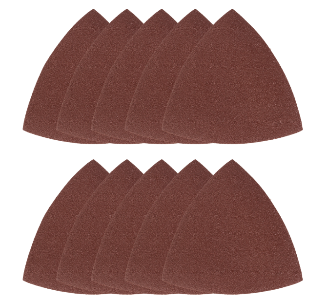 Lot de 10 papiers abrasifs Delta Grit 120. Idéal pour les travaux de ponceuse sur le bois. Dimensions : 93 mm de chaque côté.