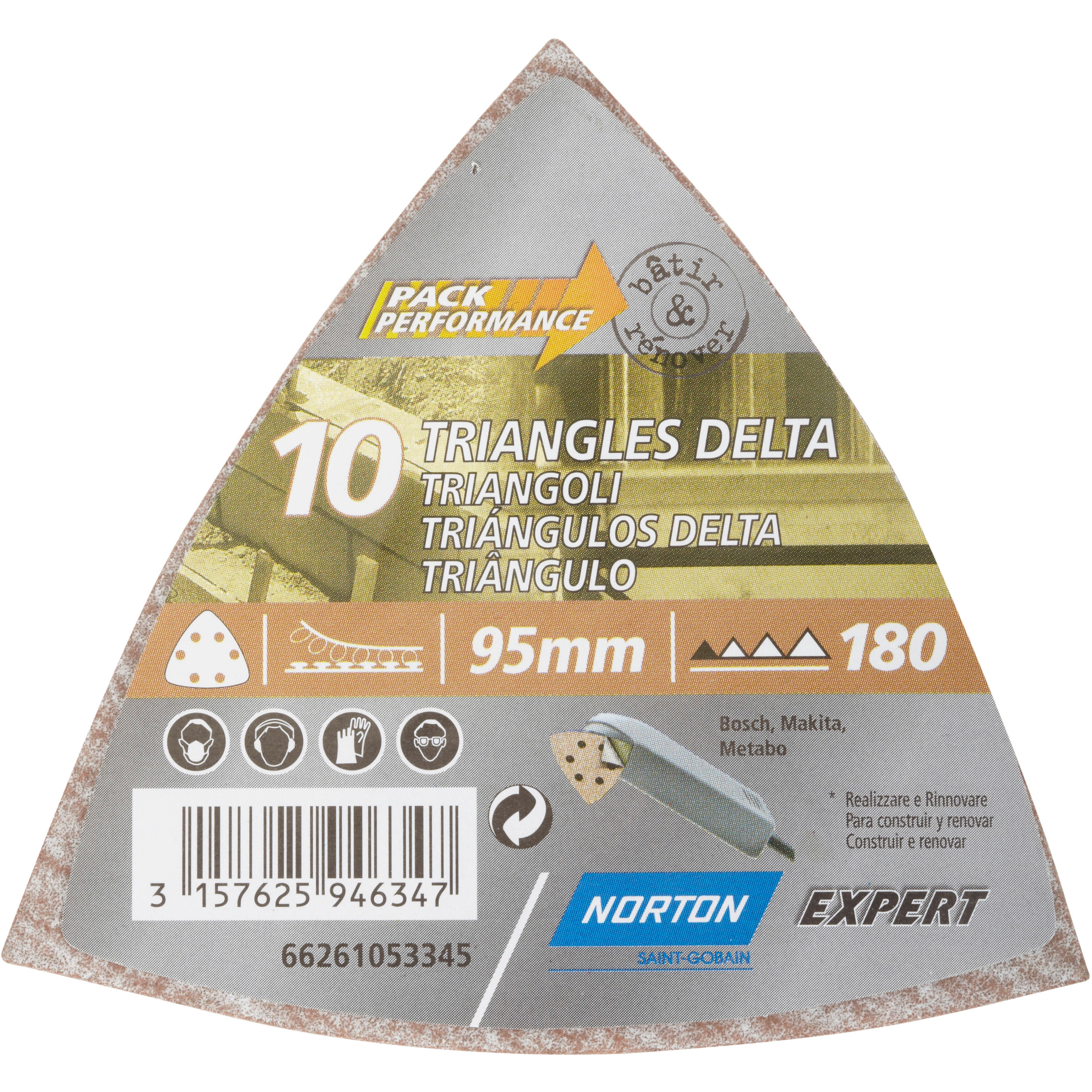 Lot de 10 patins abrasifs NORTON, 93x93 mm, grains 180
