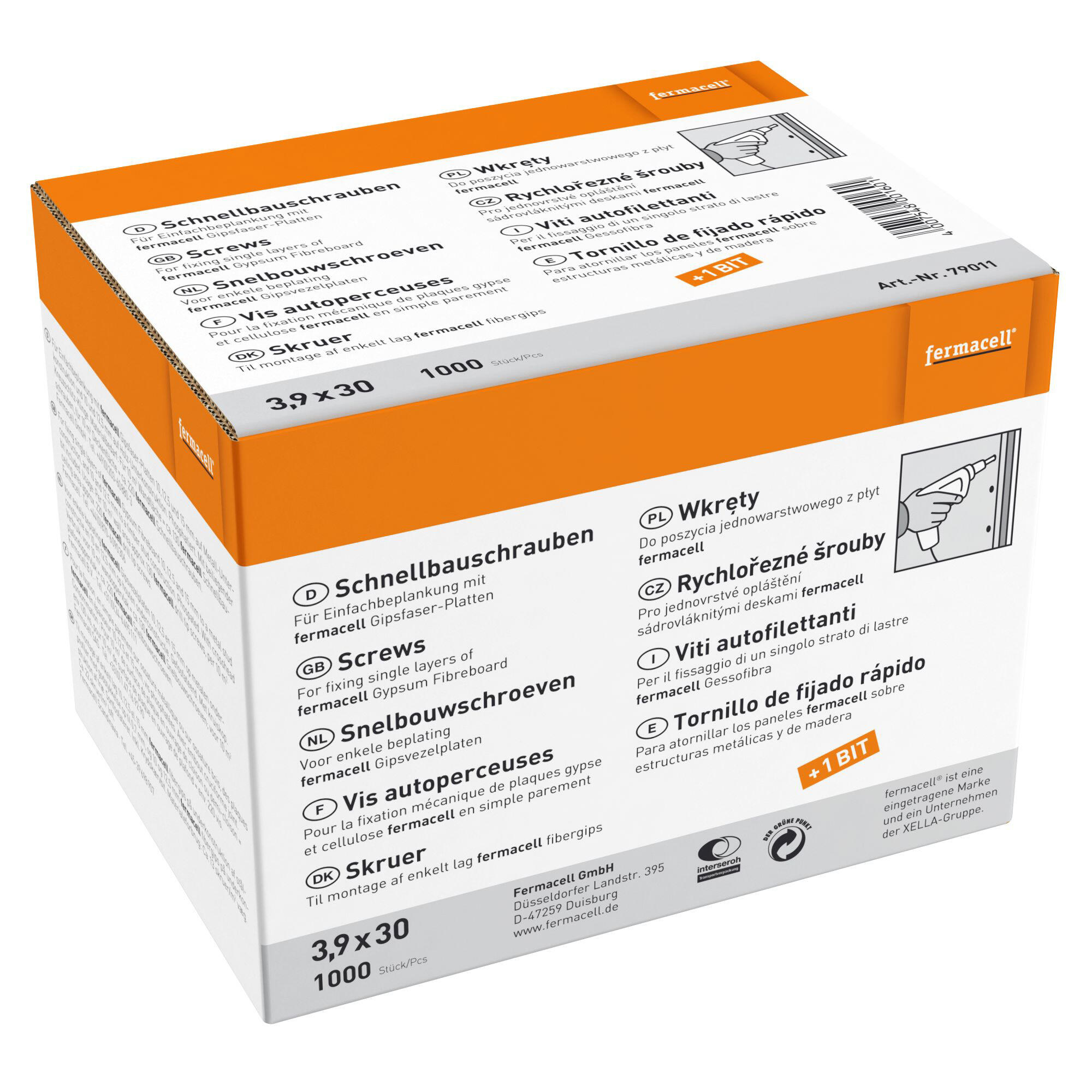Lot de 1000 vis auto perceuses pour cloison/plafond, FERMACELL, 3.9 x 30 mm