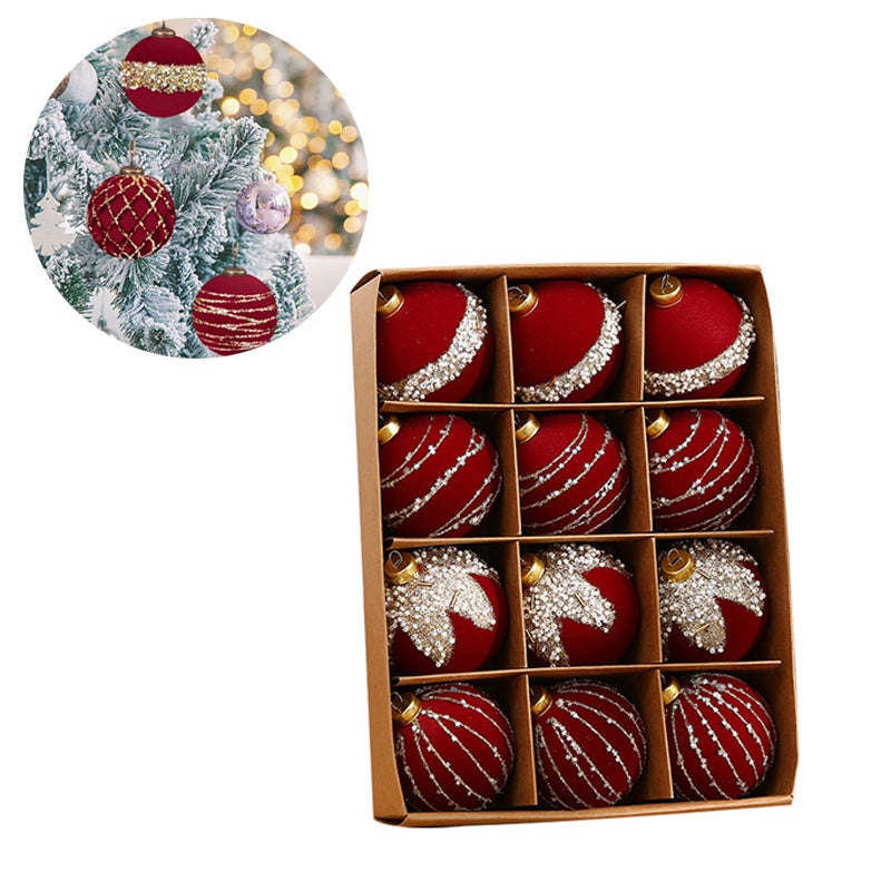 Lot de 12 boules de Noël floquées rouges, boules suspendues pour arbre de Noël, décoration de scène, décorations suspendues DIY, fête de fin d'année