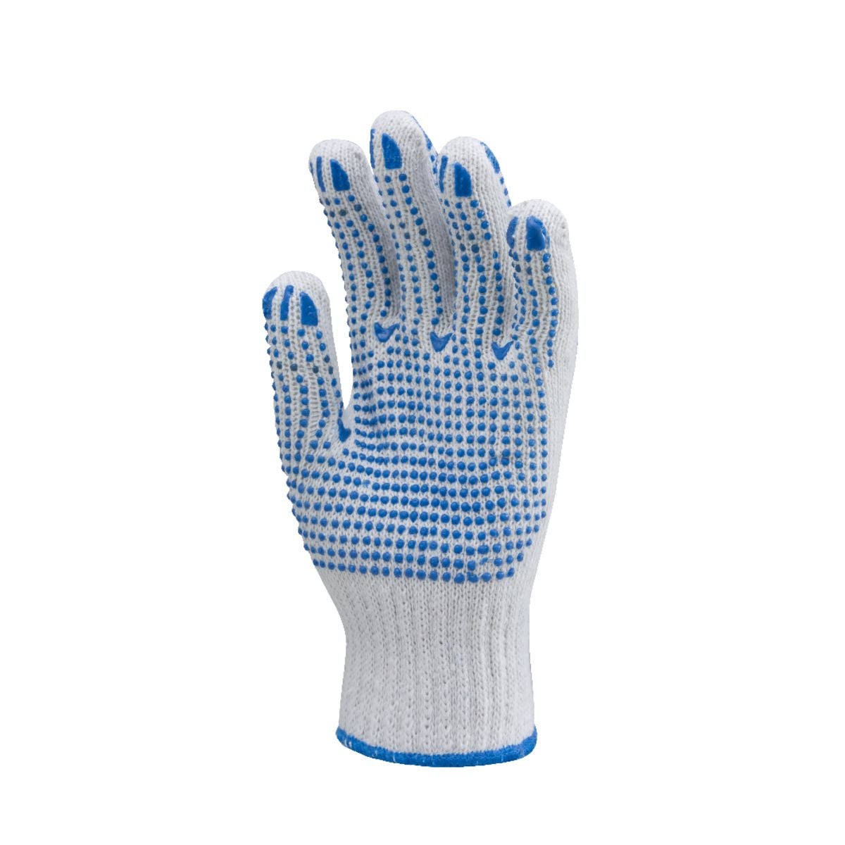 Le Gant coton/polye tric, picots bleus 2 faces TH de COVERGUARD est composé de coton résistant avec paume et dos recouverts de picots anti-dérapant.