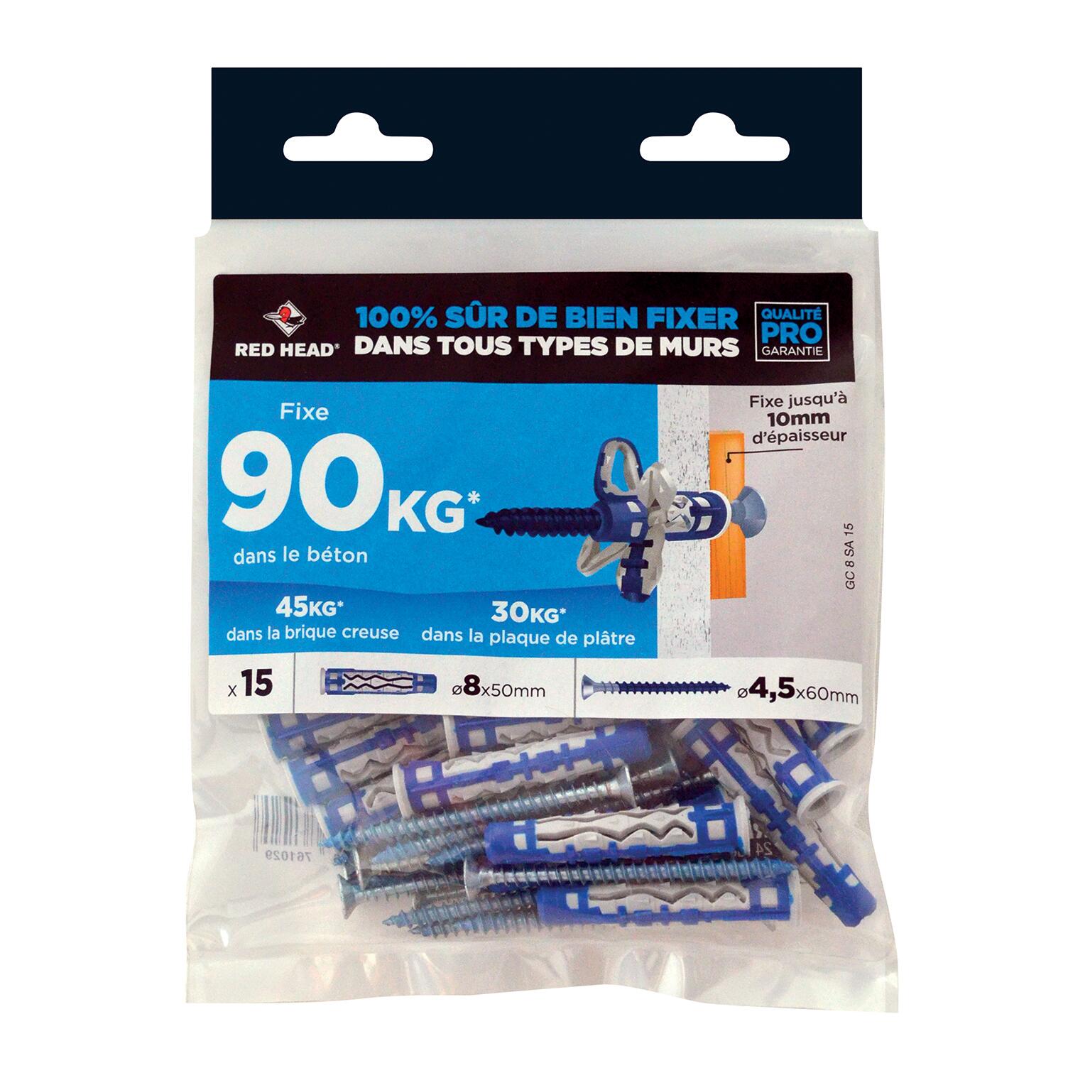 Lot de 15 Cheville murale mx gamme couleur RED HEAD, Ø8 x L.50 mm