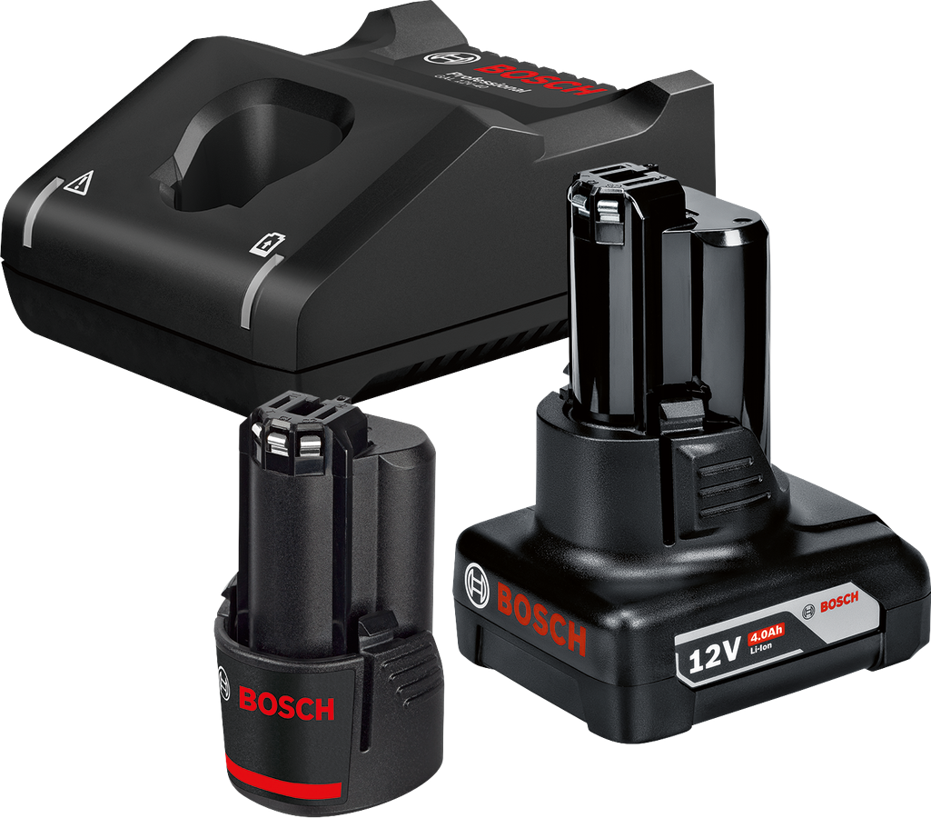 Comprend une batterie 12 V compacte, une batterie 12 V à grande autonomie et un chargeur rapide. GBA 12V 2.0Ah comme batterie compacte et légère et GBA 12V 4.0Ah conférant une grande autonomie à toute la gamme d’outils 12 V.. GAL 12V-40 : vitesse de charge rapide pour toutes les batteries 12 V. Recharge une batterie 12 V / 2,0 Ah de 0 à 80 % en 24 min.. Compatible avec tous les outils 10,8 V et 12 V de Bosch Professional (Professional 12V System)