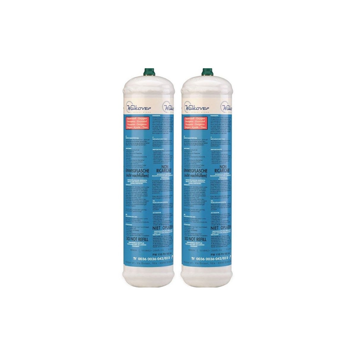 Lot de 2 Bouteilles Oxygène Jetable 110 bar Connexion M10 Soudure bi-gaz 110 Litres KEMPER